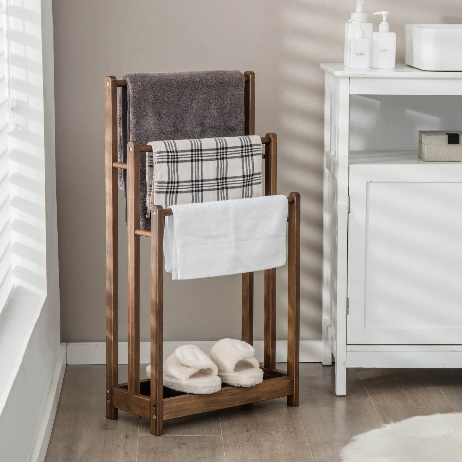 Freestanding Wood Towel Rack with 3 Individual Bars and Bottom Storage Shelf-Rustic Brown