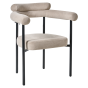 Upgrade your dining room with this stylish set of two chairs, designed with a comfortable rounded backrest. The fabric upholstery ensures a soft seating experience, while the iron legs offer stability and a sleek look. Perfect for modern interiors, these chairs add a touch of elegance to your dining space.
