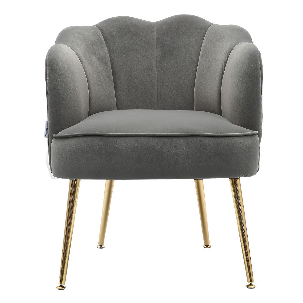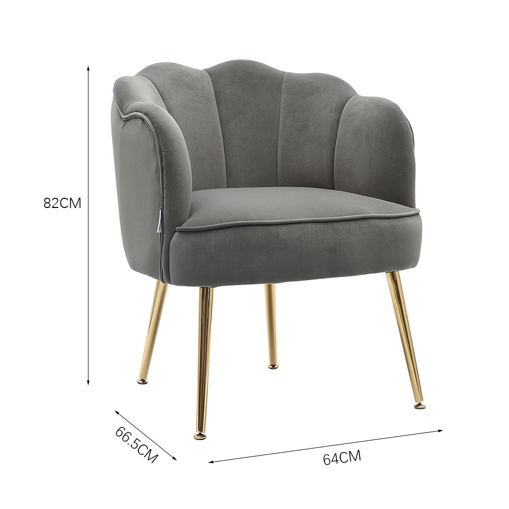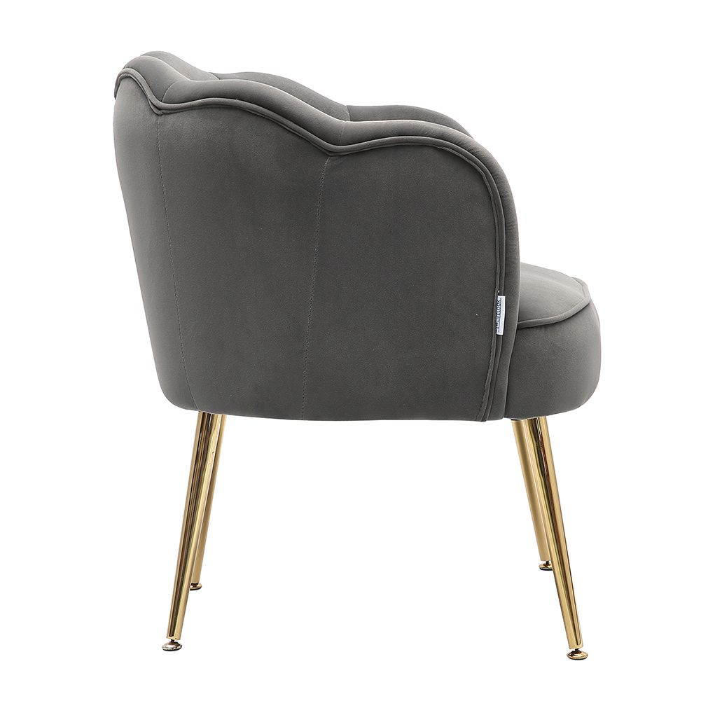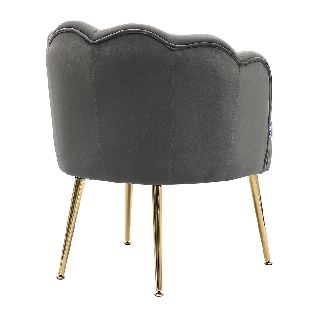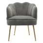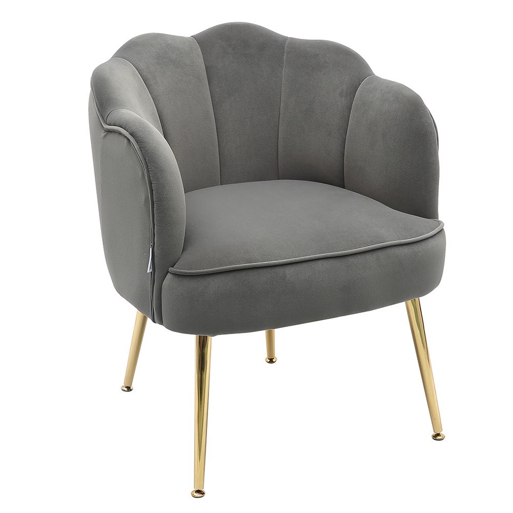 Frosted Velvet Shell-shaped Armchair Petal Backrest with Golden Metal Legs Casual Grey