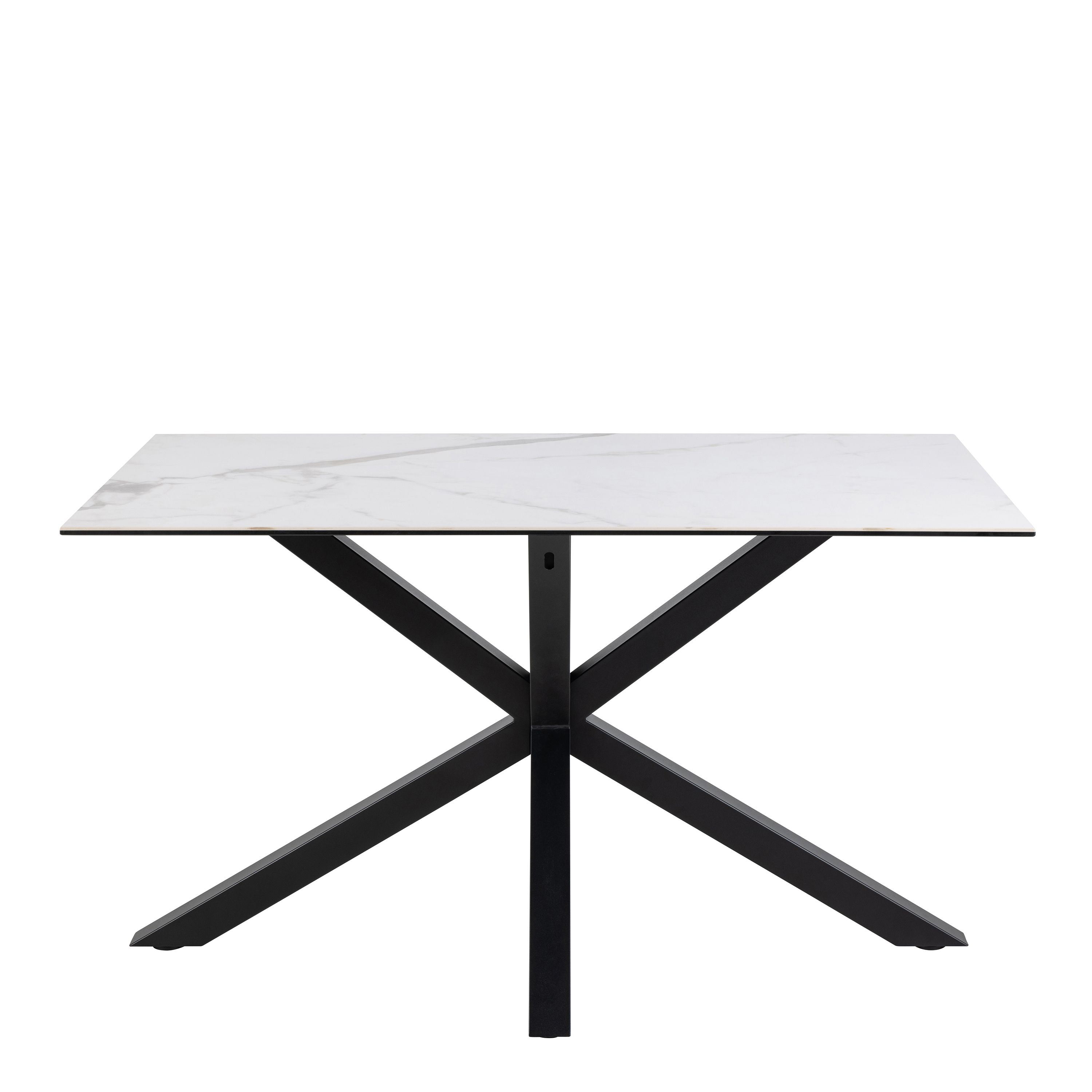 FUMES Dining Table with Ceramic White Top 135cm Included 4 Swivel Cream Dining Chair with Armrest