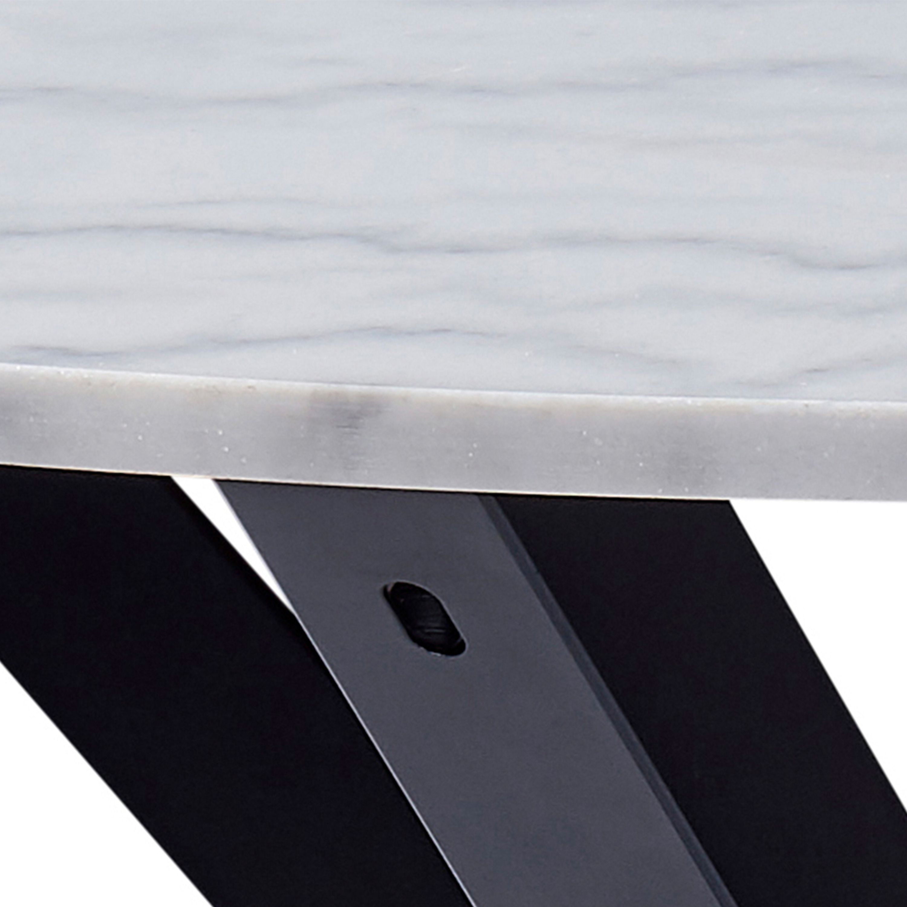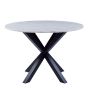 FUMES Round Dining Table with White Polished Marble Top Included 4 Dining Chair In Black with Cream Stitching