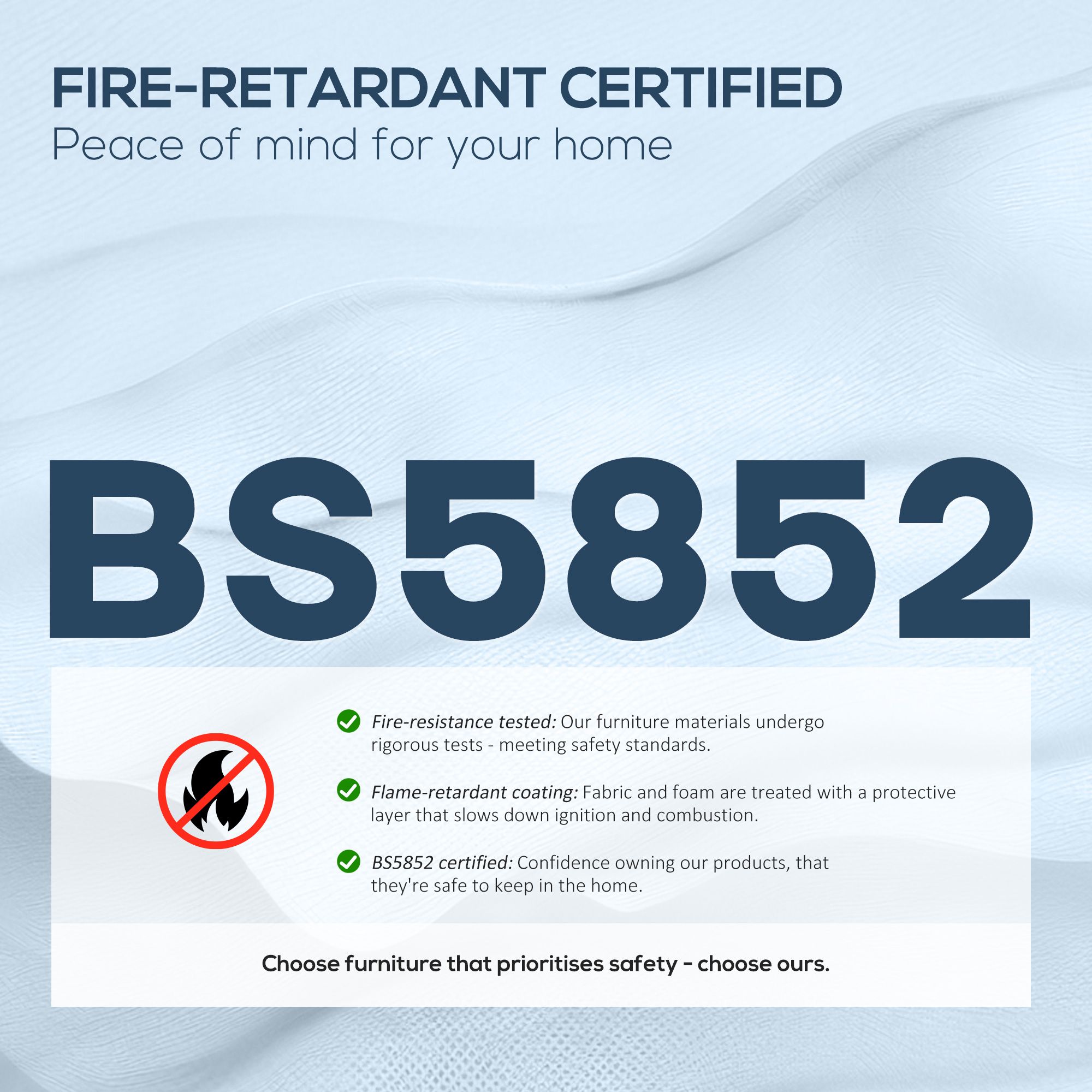 Max Load: 150kg, Reclining Angle: 150°, Certification: BS5852 (Fabric and padding)