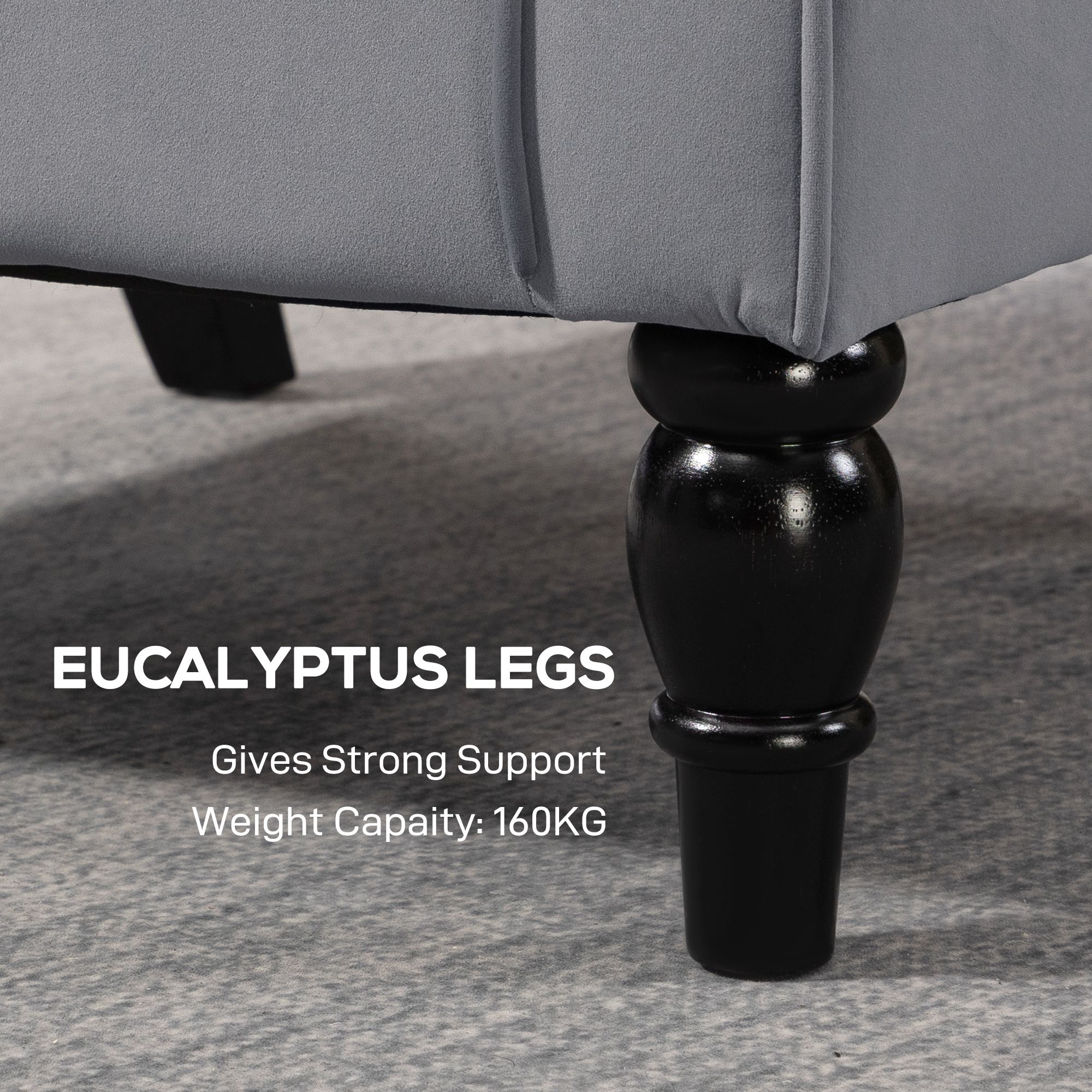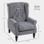 Inject a vintage feel into your home with this HOMCOM accent chair. The frame is made from wood for a strong and solid foundation, supporting up to 160kg. The wide and large frame is padded for comfort. Comes complete with tufting on the back for extra style. Retro vintage look: This wingback chair is a timeless addition to your home. Brings a welcoming, homely feel into where you decide to have it. Wooden frame: The strong and solid foundation of this accent chair means it stands steady and balanced, supporting up to 160kg. Padded with pocket springs: The comfy chair combines a 12cm thick foam cushion with built-in pocket springs, providing responsive bounce and support, ensuring long-lasting comfort for extended sitting. Soft Upholstery: Wrapped in smooth, plush velvet-feel fabric, the chair offers a soft and cosy feel that invites relaxation. Its elegant texture adds a refined look, enhancing the overall style of your space.