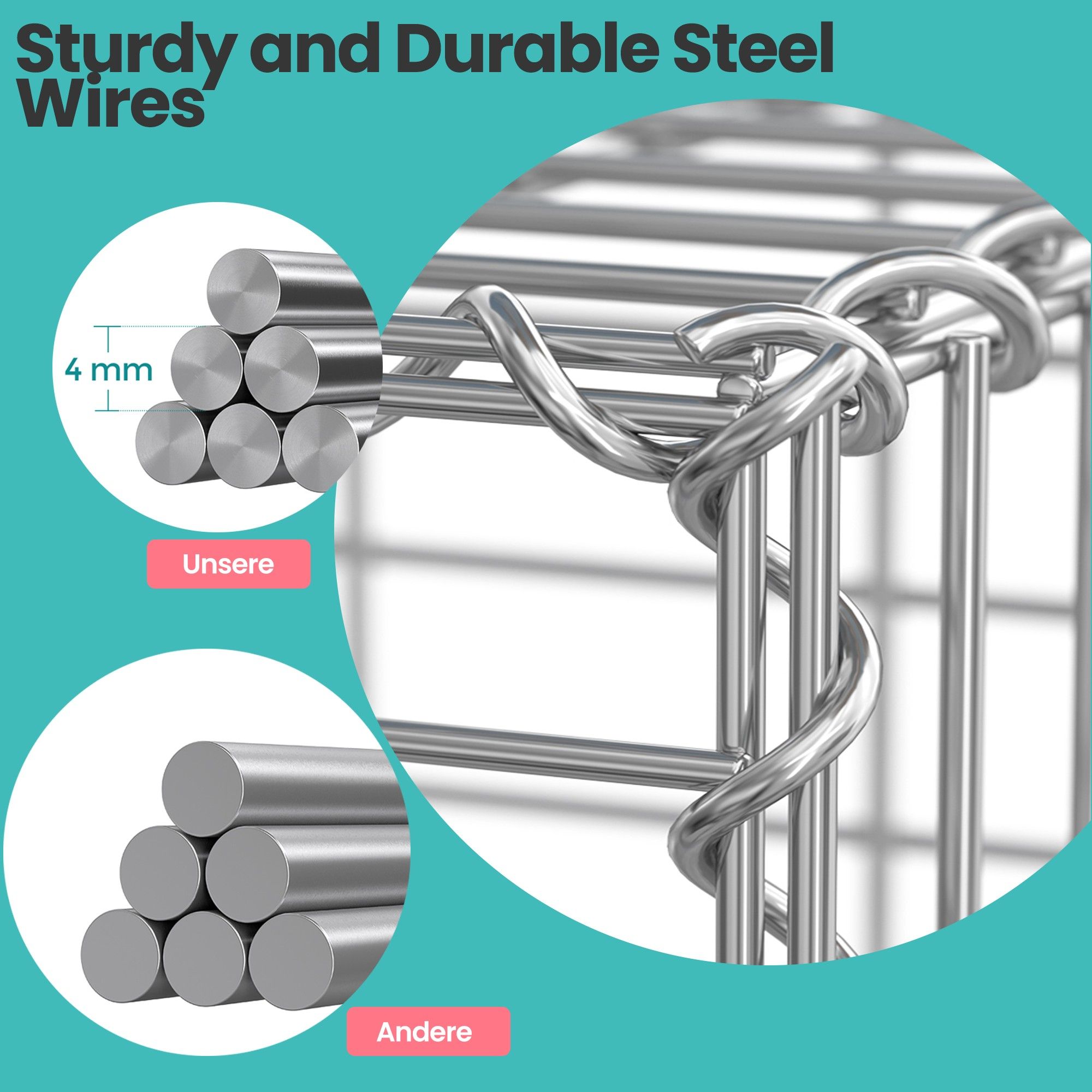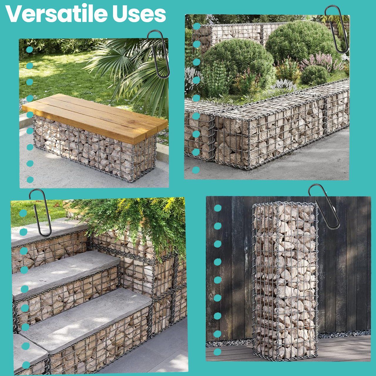 Gabion Basket - FIORIA Metal Cage Mesh - Garden Fence Wall Partition - Silver