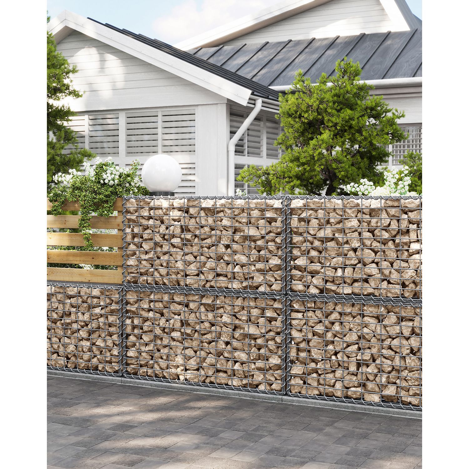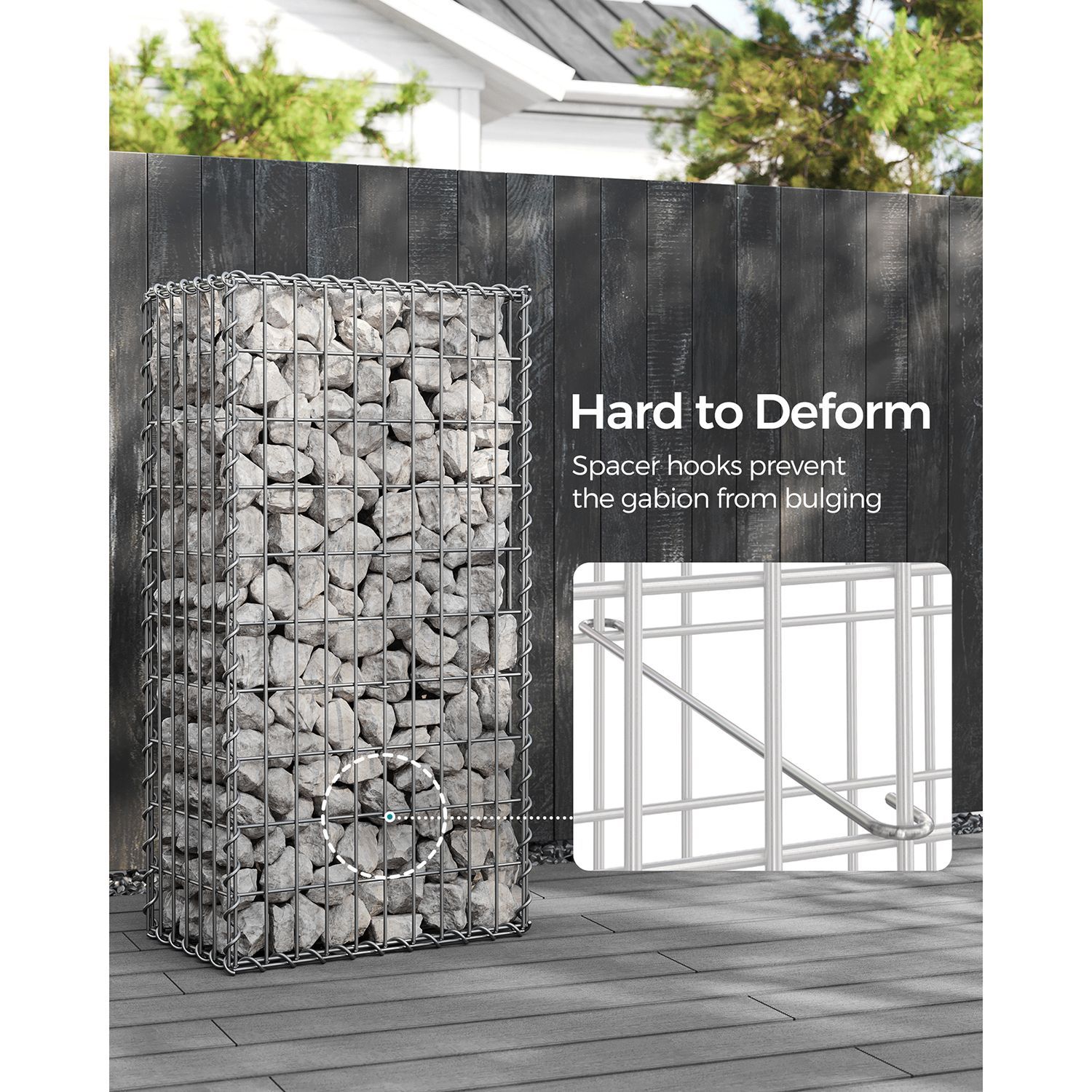 Gabion Basket, Metal Gabion Cage for Stones, Galvanised, Garden Decor Wall Partition, 100 x 50 x 30 cm, Silver GGB153