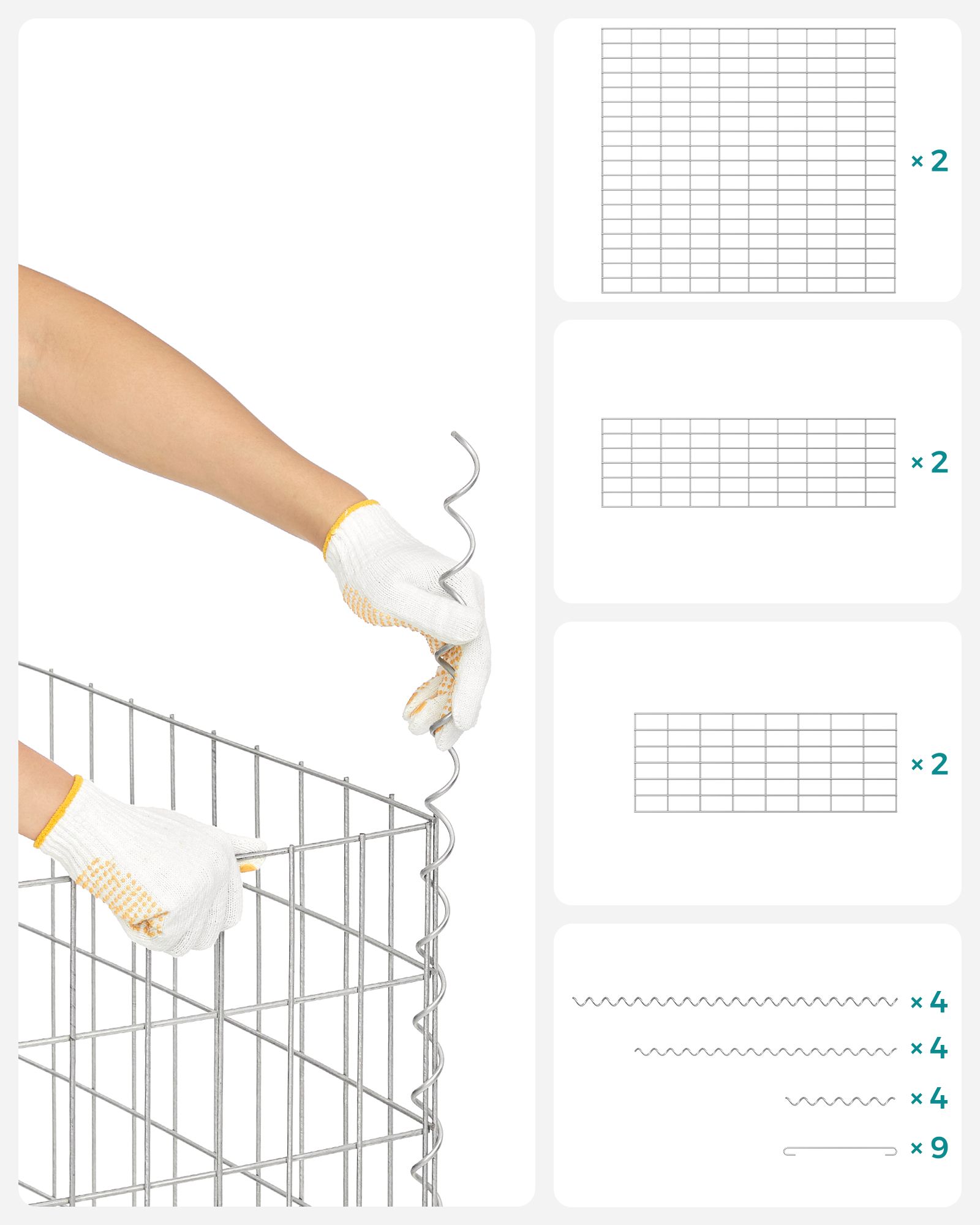 Gabion Cage - NOVRA Metal 5x10cm Mesh 100x80x30cm - Silver