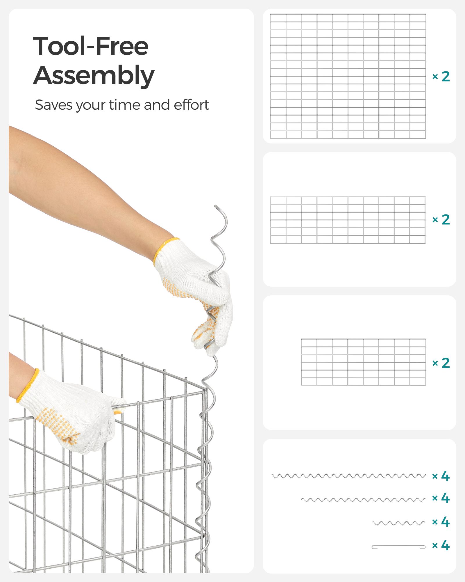 Gabion Cage - SOLZA Metal Stone Cage 100x80x30cm - Silver