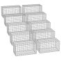 Gabion Metal Cage - FIORIA Mesh Basket with 40 Spacer Hooks Set of 10 - Silver