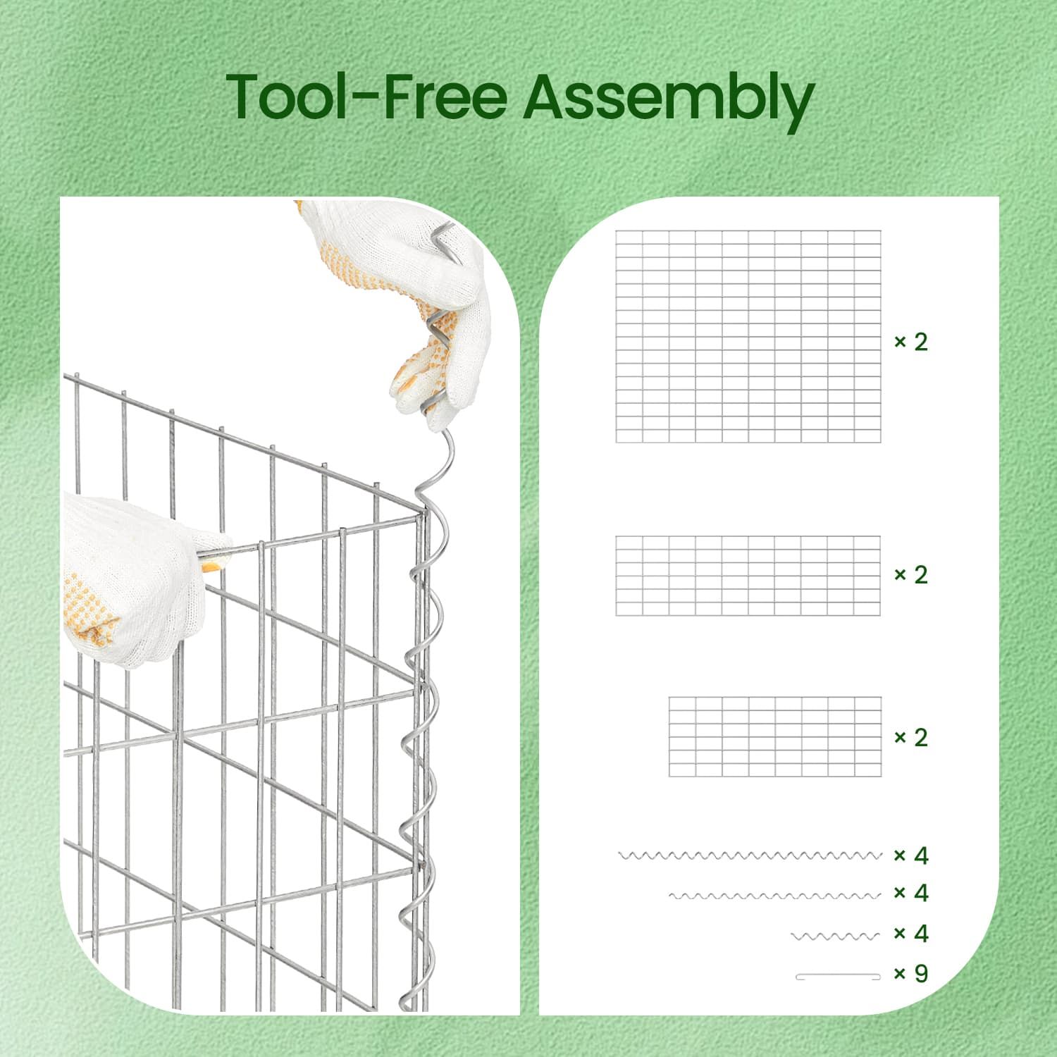 Gabion Metal Cage - FIORIA Mesh Basket with 48 Spacer Hook Set - Silver