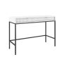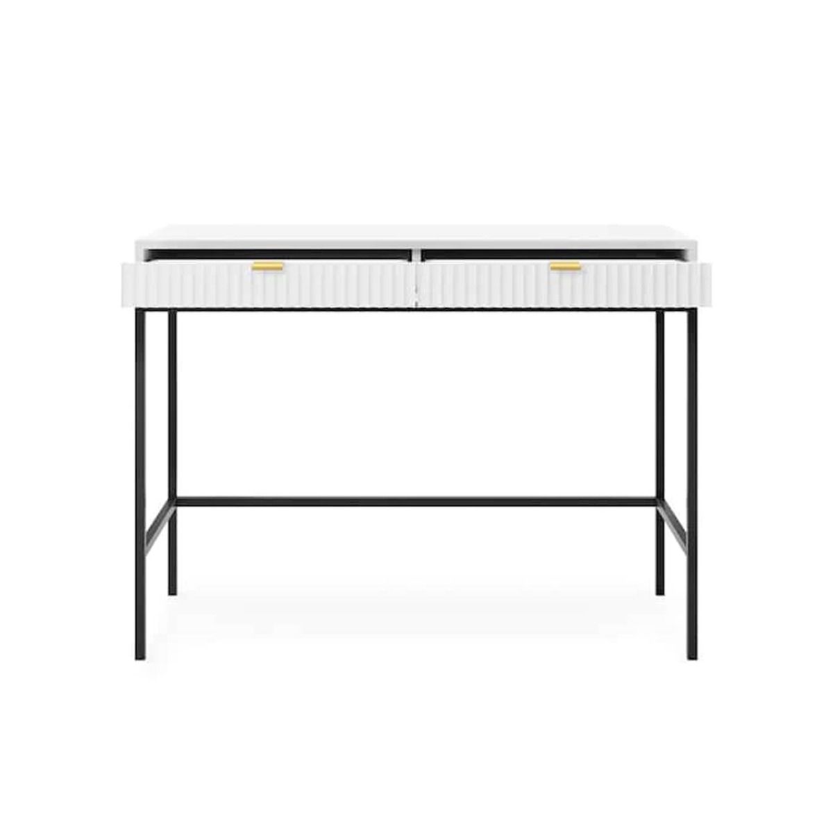 Elevate your workspace with the Galadriel Nyx Desk with 2 Drawers – a harmonious blend of aesthetics and functionality. Crafted from high-quality laminated board and supported by sleek metal legs, this desk transforms any space into a modern, sophisticated haven. The minimalist design adds a touch of elegance, while the two drawers provide ample storage for small accessories, books, magazines, and stationery. With durability at its core, this desk is not just a piece of furniture but a statement of contemporary style, making it the perfect addition to your living or working area. Assembly is required, but the result is a chic and functional desk that redefines your workspace.