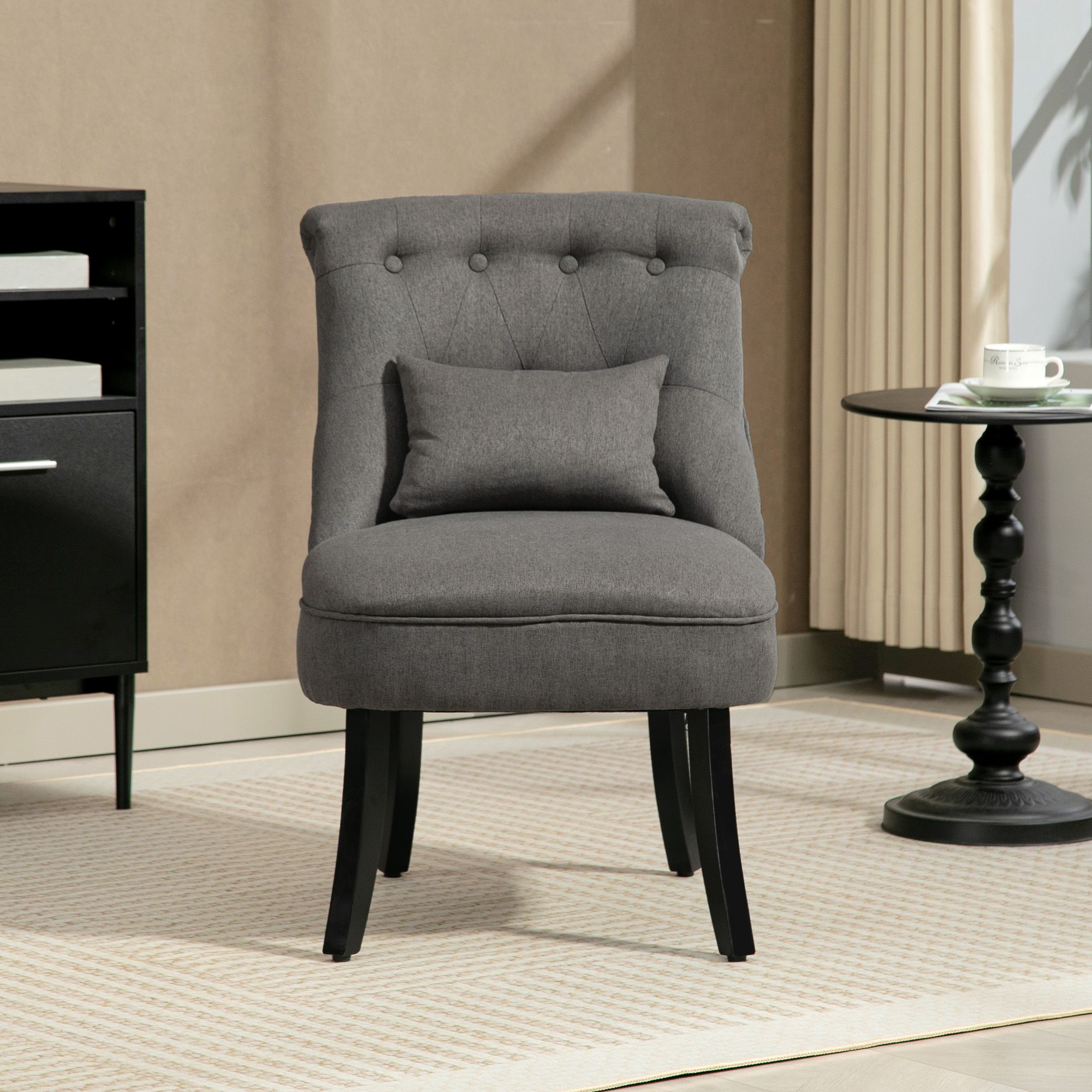 GALEN Linen Fabric Dining Chair with Pillow - Charcoal Grey