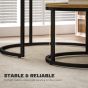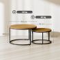 Whether you pull them apart, or push them together, these two tables from HOMCOM are sure to make the right impression in your home. The set comes with a small and large table, so they overlap each other perfectly; sliding together for compact storage. Each table base is made from steel to ensure a stable structure. The table tops are covered in a beautiful wood-effect which will hold style and beauty for years to come. Two round tables: This set includes a large (78.5 x 78.5 x 46.5 cm) and a small (59 x 59 x 36.5 cm) round coffee table. Both can be arranged in various positions, fitting effortlessly in living rooms, bedrooms, home offices and small spaces. Nesting design: These end tables can be nested together or used separately for various occasions. The smaller table fits neatly under the larger table, allowing you to save space when not in use Elegant design: Round table tops, finished in wood-effect. Contrasts the black frame and brings beauty into your home/office. Robust Built: Each frame is made from solid steel for sturdiness, with protective foot pads. MDF table tops are resilient to light everyday wear.