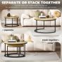 Whether you pull them apart, or push them together, these two tables from HOMCOM are sure to make the right impression in your home. The set comes with a small and large table, so they overlap each other perfectly; sliding together for compact storage. Each table base is made from steel to ensure a stable structure. The table tops are covered in a beautiful wood-effect which will hold style and beauty for years to come. Two round tables: This set includes a large (78.5 x 78.5 x 46.5 cm) and a small (59 x 59 x 36.5 cm) round coffee table. Both can be arranged in various positions, fitting effortlessly in living rooms, bedrooms, home offices and small spaces. Nesting design: These end tables can be nested together or used separately for various occasions. The smaller table fits neatly under the larger table, allowing you to save space when not in use Elegant design: Round table tops, finished in wood-effect. Contrasts the black frame and brings beauty into your home/office. Robust Built: Each frame is made from solid steel for sturdiness, with protective foot pads. MDF table tops are resilient to light everyday wear.