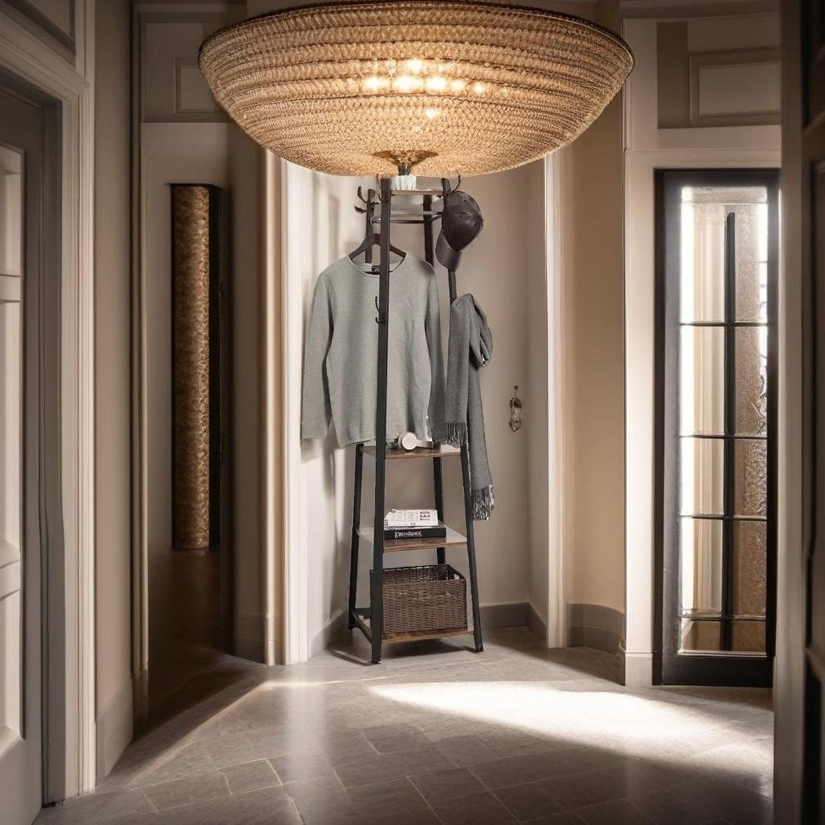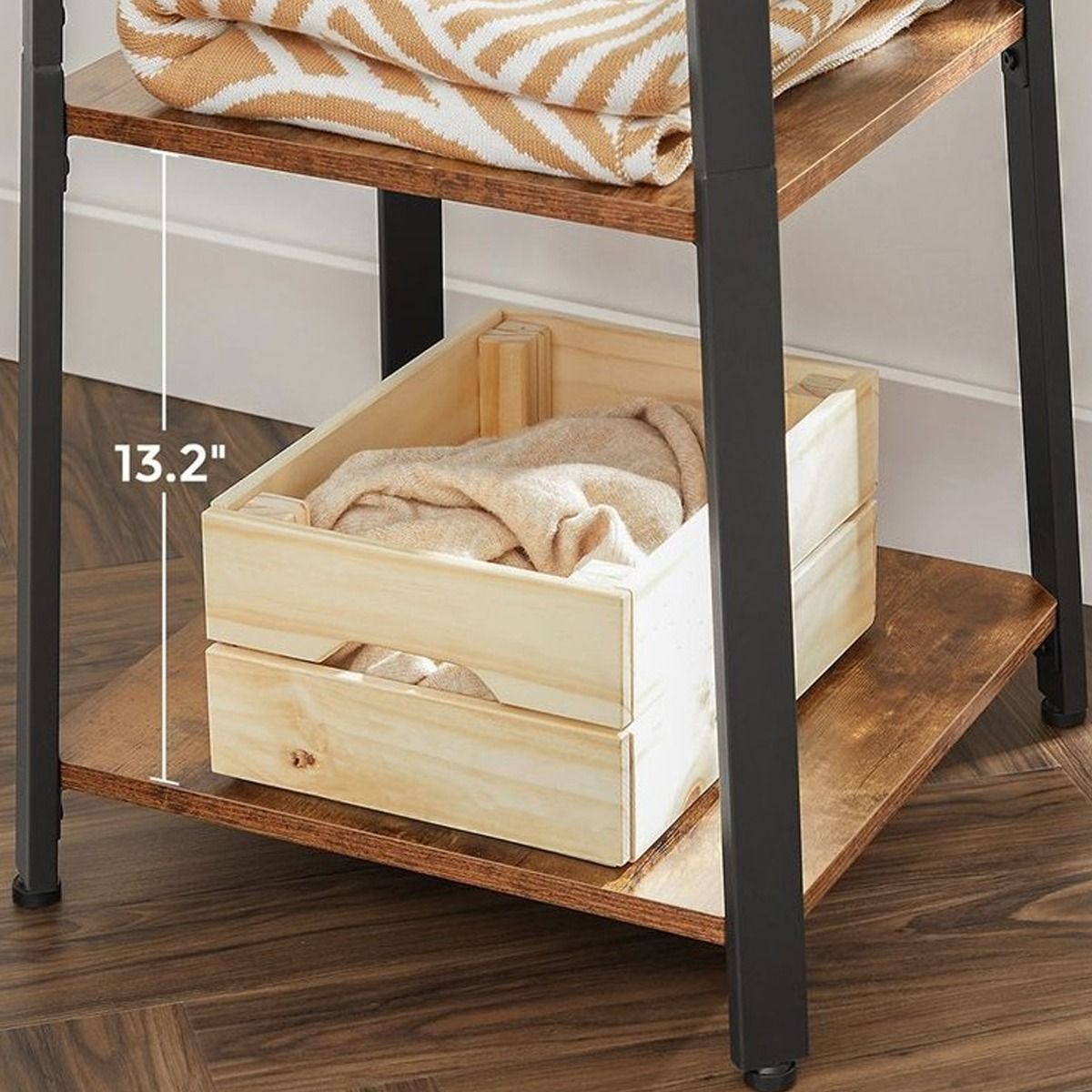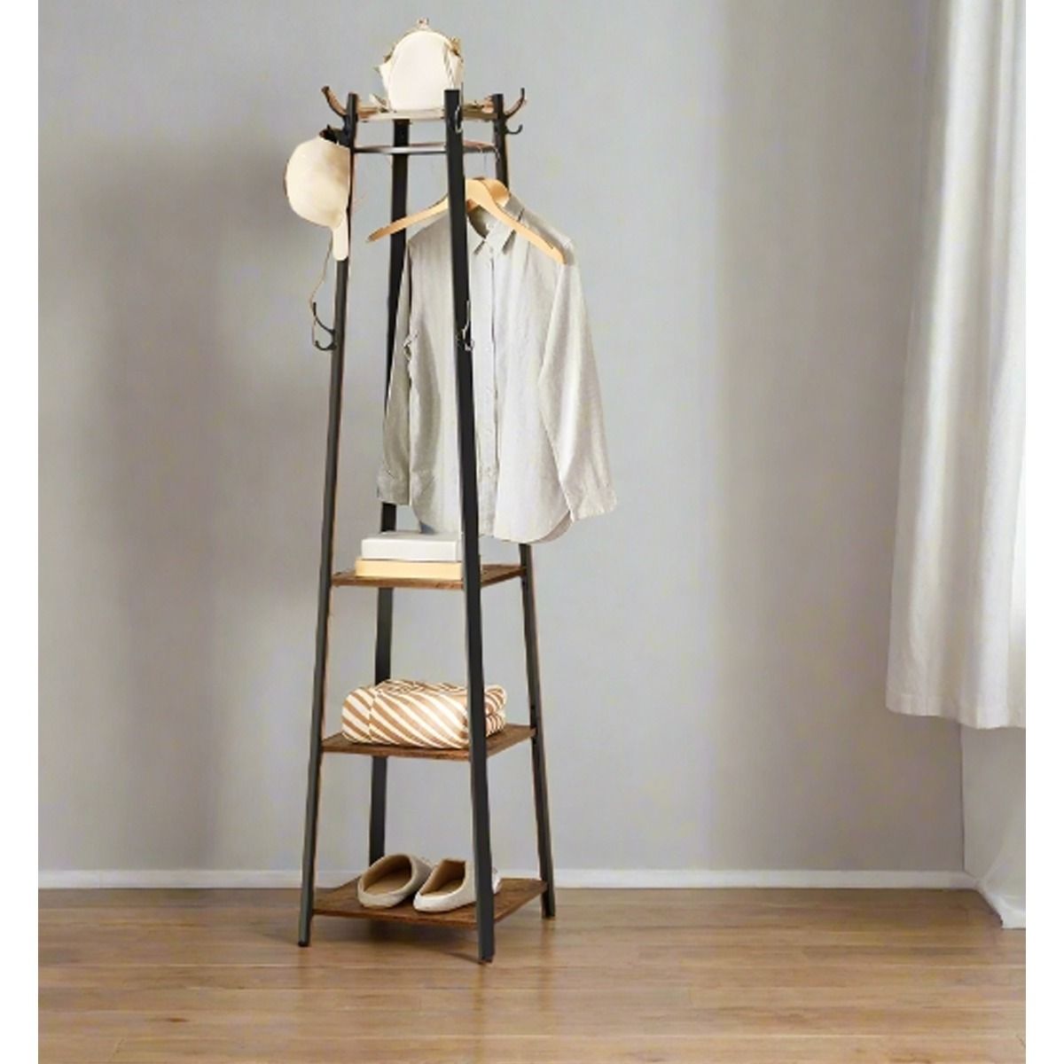 GALVION Coat Rack Stand with Hooks and 3-Tier Storage Shelves - Black and Rustic Brown