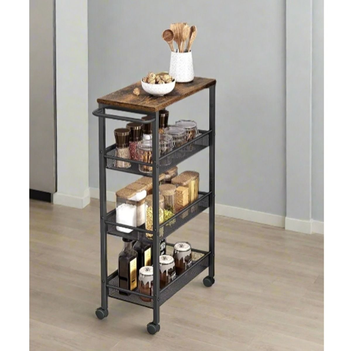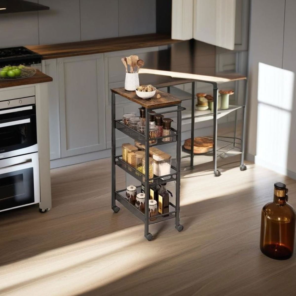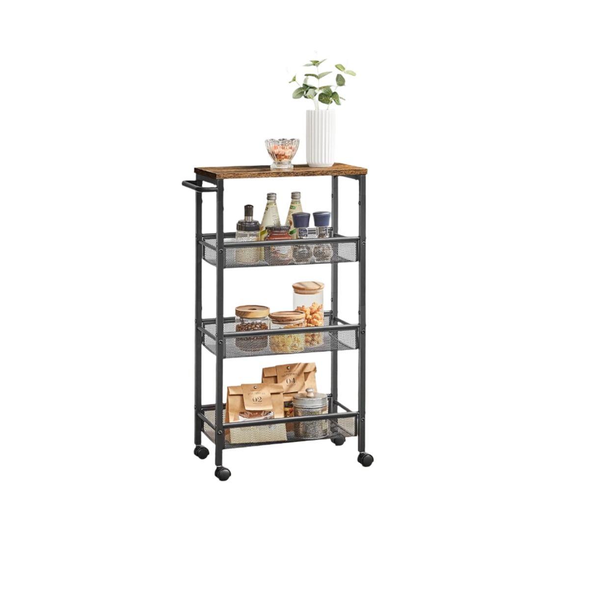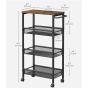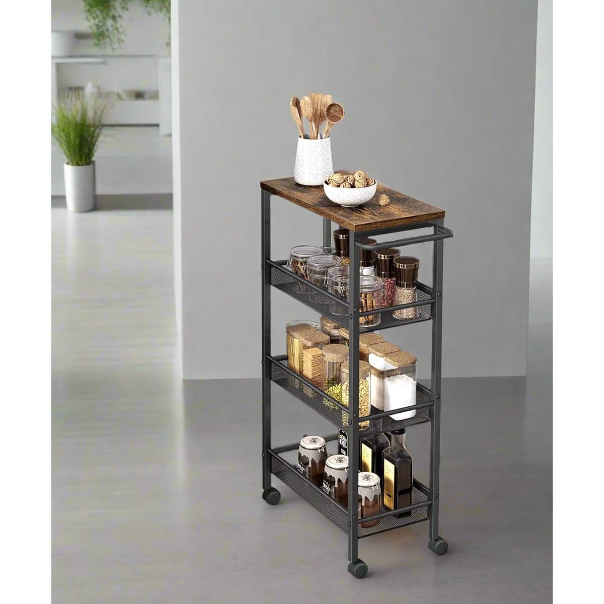 GALVION Kitchen Trolley Slim 4-Shelf Rolling Cart with Wheels - Rustic Brown and Black