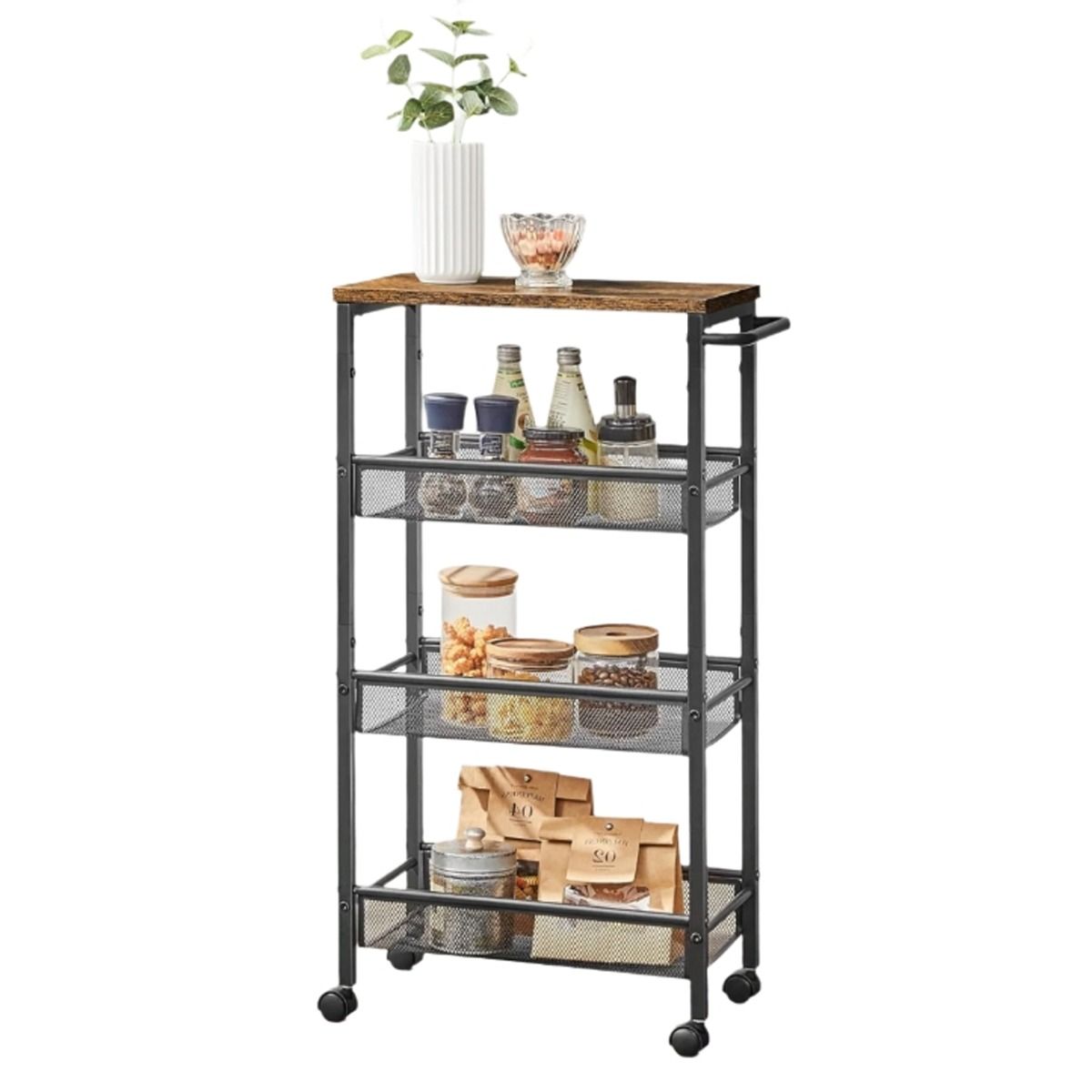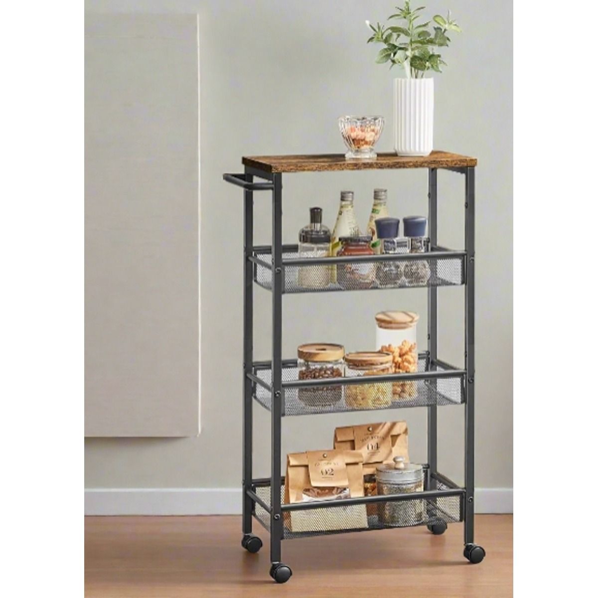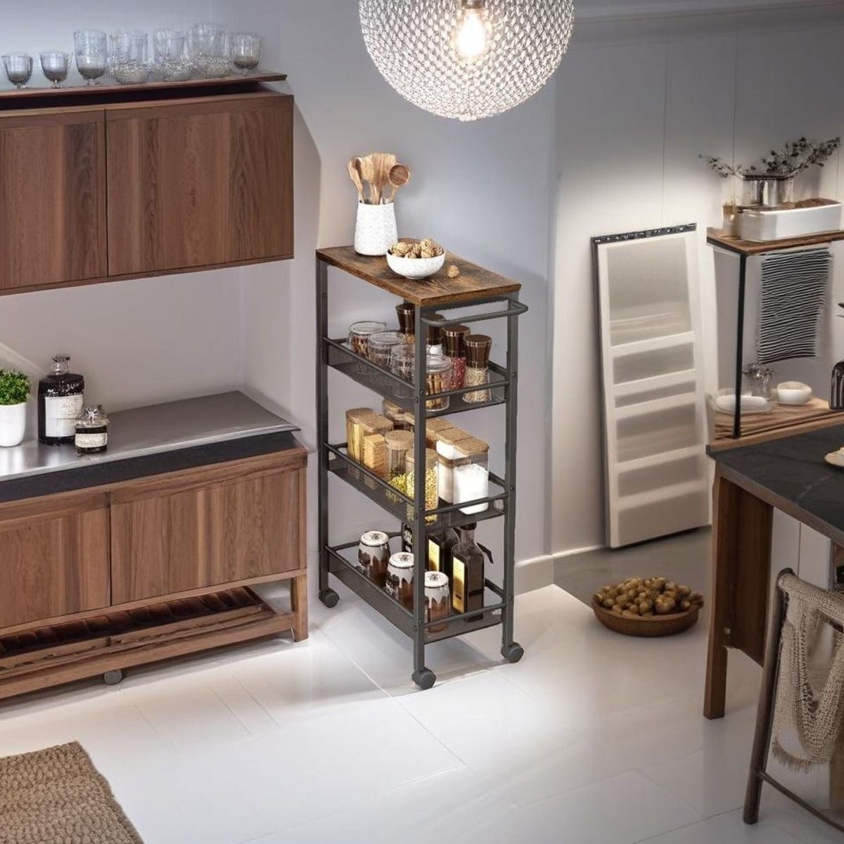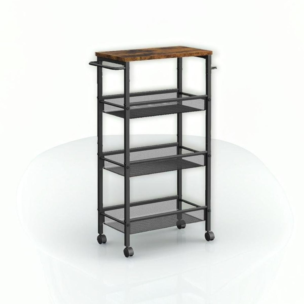 GALVION Kitchen Trolley Slim 4-Shelf Rolling Cart with Wheels - Rustic Brown and Black