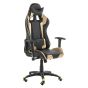 Bring a modern vibe to your home office with this eye-catching yet ergonomic gaming chair. Upholstered with faux leather it is both robust and comfortable. Adjustable height and armrests let you set up the chair according to your needs. A neck pillow guarantees additional comfort and relief for the spine. The fully reclining backrest allows you to take a break from your project, or to kick back and enjoy the game. Details: Color: Black, Gold. Main material: Faux Leather. Additional material: Synthetic Material, Metal, PVC. Material Composition: 100% PVC Leather Weight: 21 Assembly: Full Assembly Required Weight Capacity: 120 Seat Height: 45-56