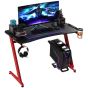 Gaming Desk, Ergonomic Home Office Desk, Gamer Workstation Racing Table, with Headphone Hook and Cup Holder, 122 x 66 x 86cm, Black and Red