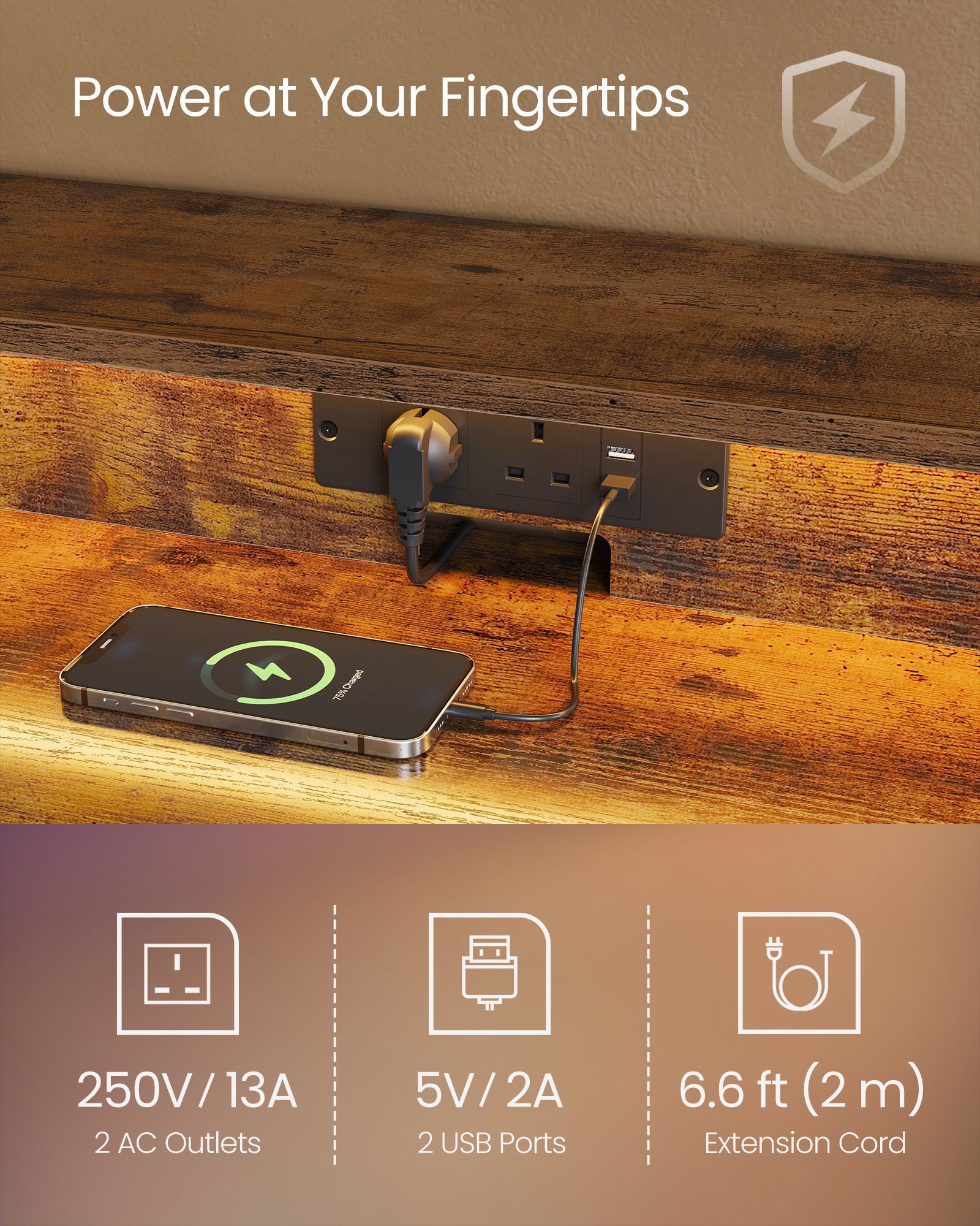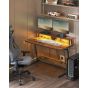 Gaming Desk - ORADA LED RGB Lighting and Power Outlet Desk - Rustic Brown