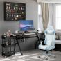 - CONVENIENCE DESIGN: This gaming desk comes with a headphone hook, a cup holder, a controller rack and 2 cable management holes to help you maintain a clear desktop and have a better gaming experience.