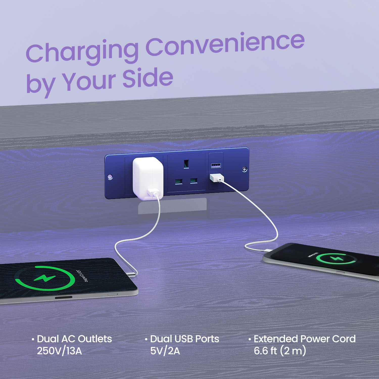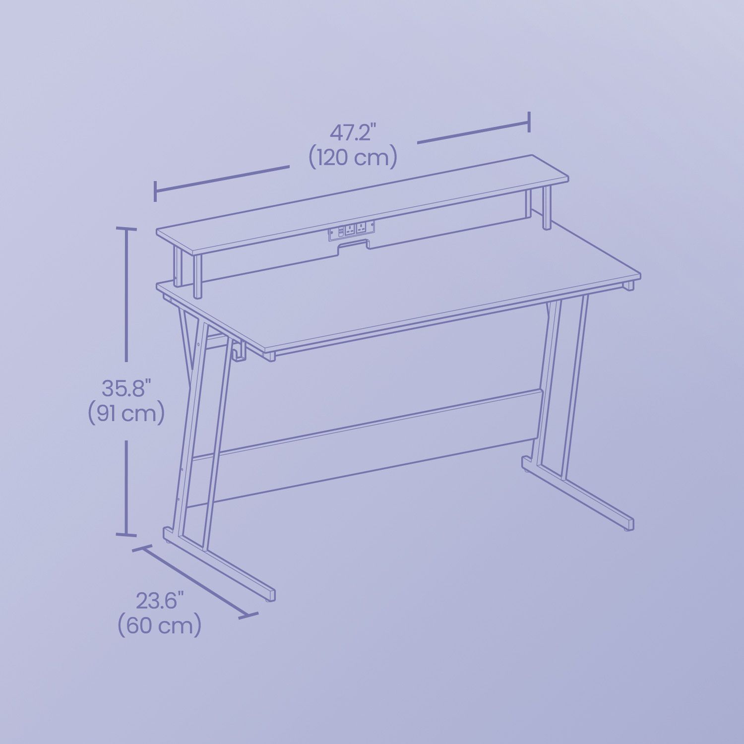 Gaming Desk - VERRA Computer Desk with LED Lights, Power Outlets, Monitor Shelf - Black