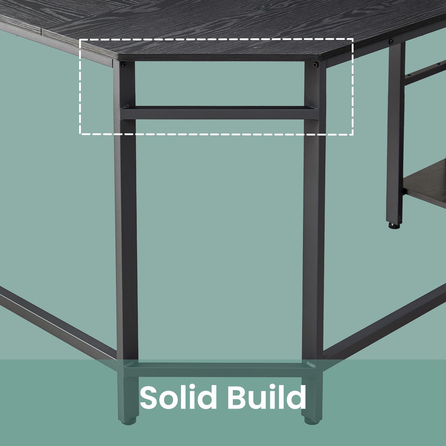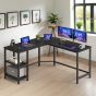 Gaming Desk - VERRA L-Shaped Corner Desk with Storage Shelves - Ebony Black