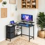 Gaming Desk - VERRA L-Shaped with Monitor Stand, Drawers, Adjustable Shelf 115cm - Ebony Black