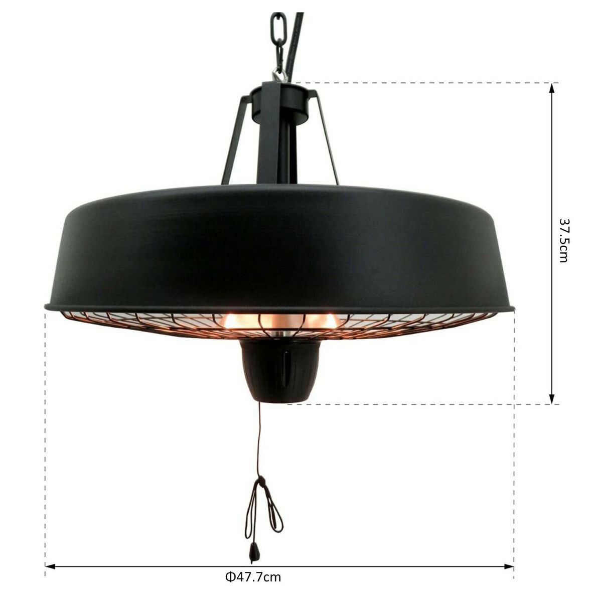 The hanging infrared heater is an ideal addition to your indoor or outdoor space, providing both light and heat to the area. Hanging this heater with included chain will help to keep you comfortable as you work or enjoy your outdoor space.