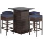 Garden Chair - 5-Piece Garden Bar Set with 2 Storage Shelves and Cushions-Navy