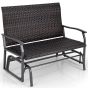 Garden Chair - Outdoor Swing Glider Bench 2-Person Rattan Woven Glider Loveseat-Brown