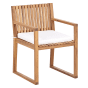 Elevate your outdoor dining area with this stylish set of chairs. Made out of certified acacia wood, it is very durable, making it a perfect addition to any outdoor space. Each chair comes with a seat cushion in a trendy colour, crafted from high-quality polyester fabric. It can be quickly attached to the chair using ties, and the cover can be taken off using a well-concealed zip.