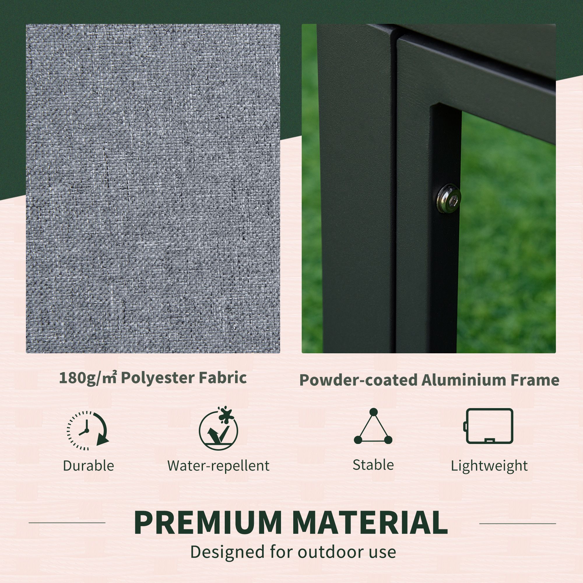 - Material: Aluminum, 180g/? Polyester