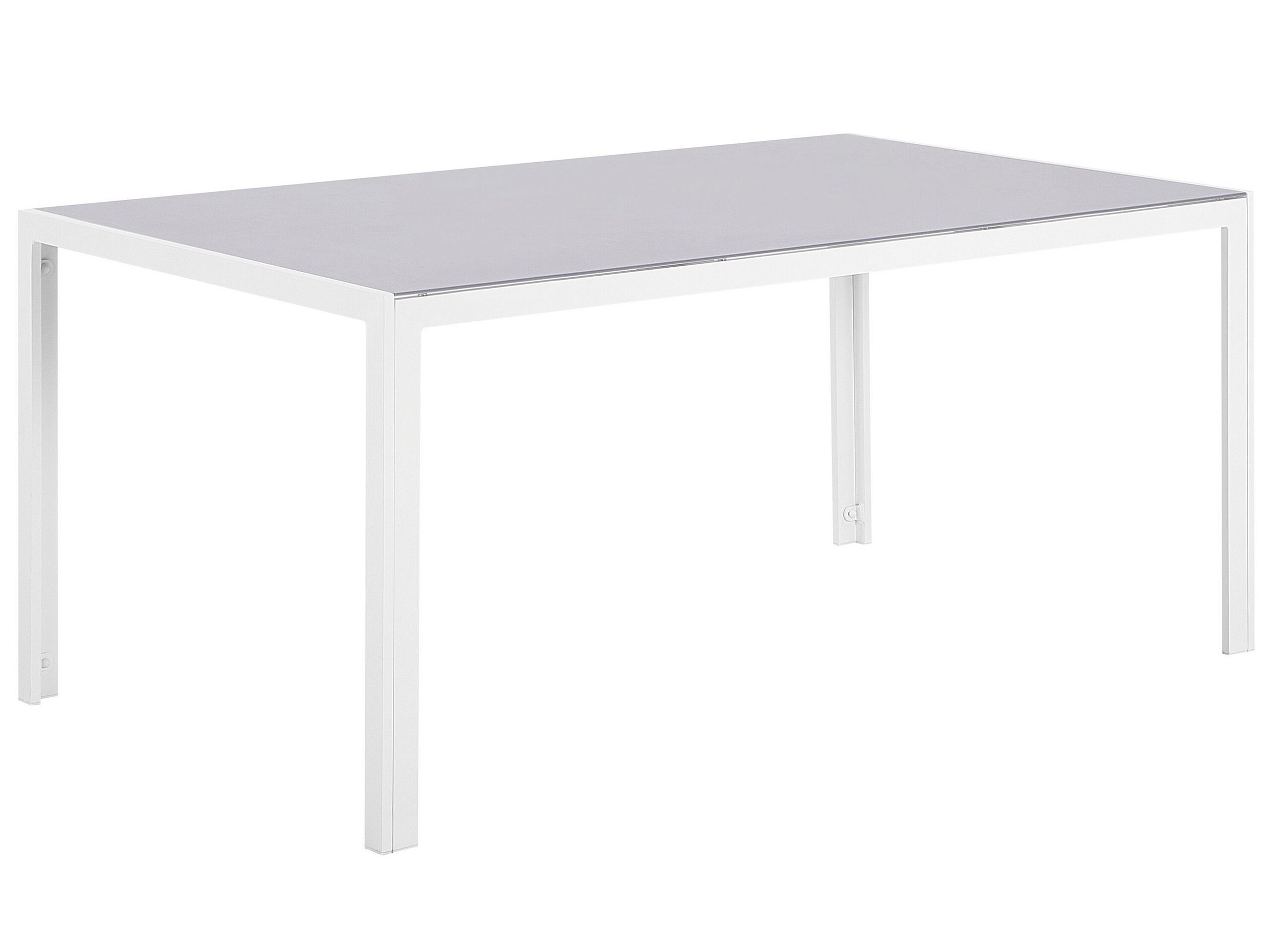 Sleek and sturdy, this garden dining table is an excellent addition to your outdoors, matching especially well with modern outdoor setups. Precisely constructed using a powder coated aluminium frame and high polish, as well as a tempered glass table top to achieve a highly sophisticated look. Exceptionally durable to withstand daily usage and diverse weather, the table is set to meet your needs for years to come. Details: Color: Grey, White. Main material: Tempered Glass. Additional material: Aluminium. Weight: 30 Capacity: 6 People Assembly: Full Assembly Required Weight Capacity: 30 Legs Height: 66