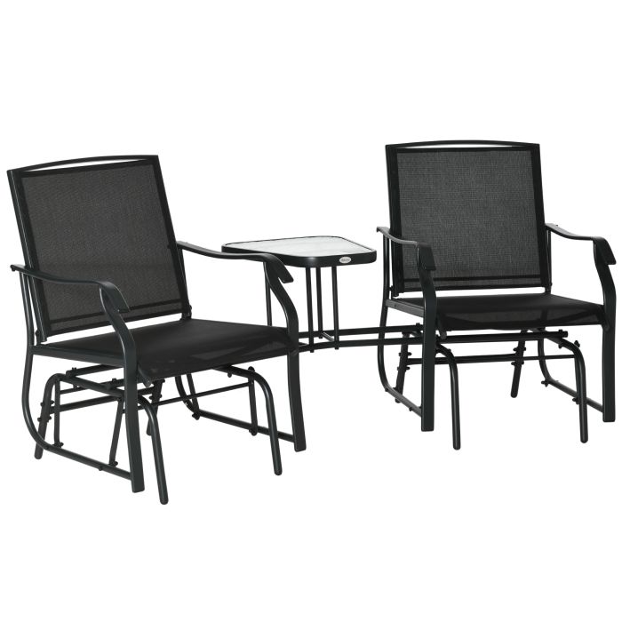Enjoy your relaxation time with a friend thanks to this chair duo from. Made from steel for strength and reliability, it is crafted in a smooth, individual gliding design to allow you to drift away peacefully at your own pace. Sitting on each seat is a mesh cover, keeping you comfortable and allowing your skin to breathe all day long. Made from glass, not only is the table perfect for keeping drinks, books and food conveniently close to hand, but it also is easy to clean and maintain. Whether it’s for relaxing with a friend or by yourself, this seat duo is perfect for taking a well deserved rest.