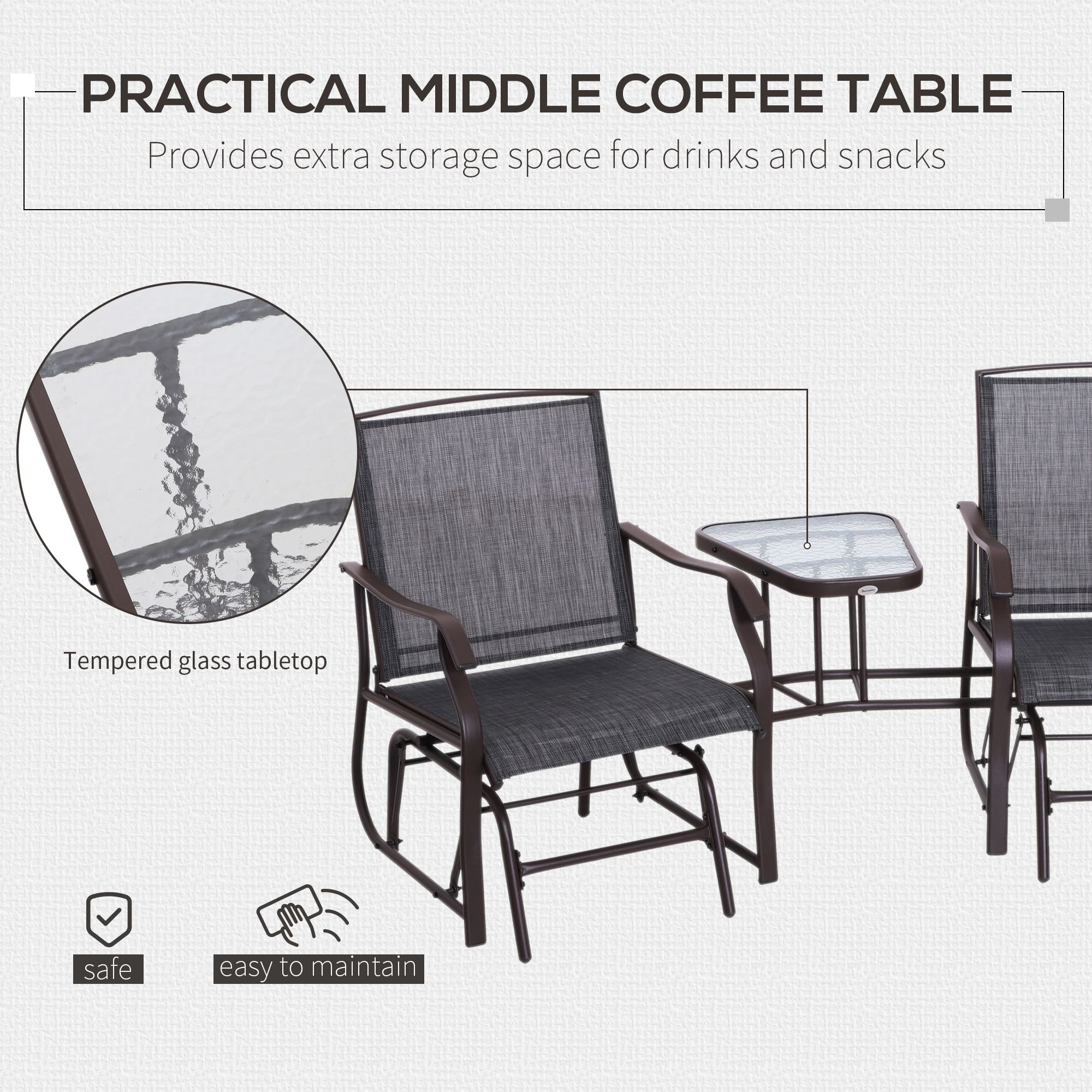 Garden Double Glider Rocking Chairs Gliding Love Seat with Middle Table Conversation Set Patio Backyard Relax Outdoor Furniture Grey