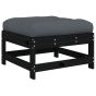 Garden Footstool with Cushion Black Solid Wood Pine