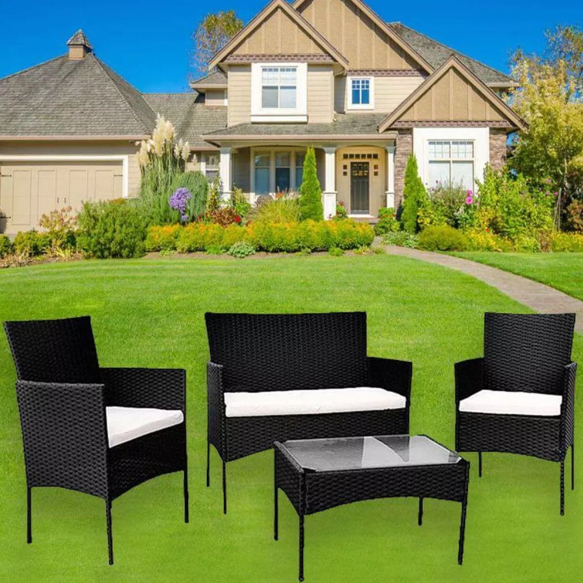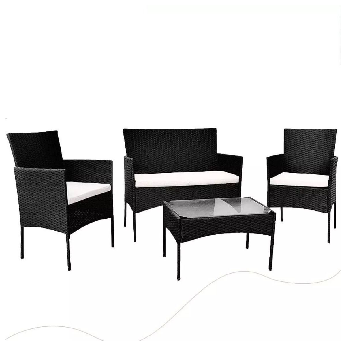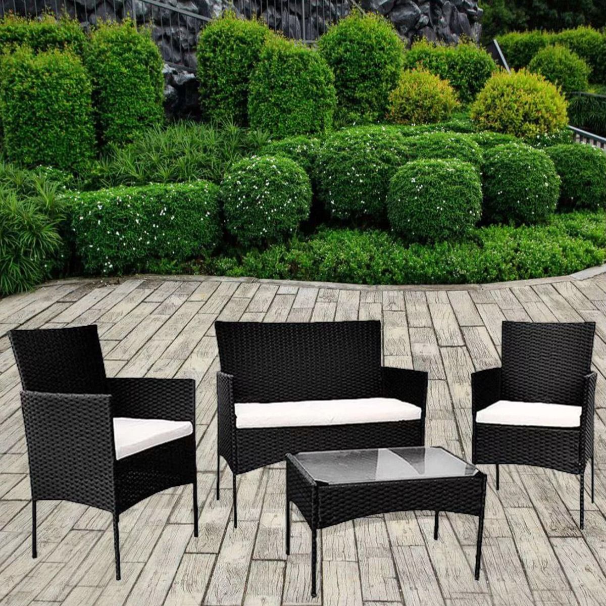 Garden Furniture 4 Piece Black Rattan Set with Table Chairs Sofa Wicker - Black