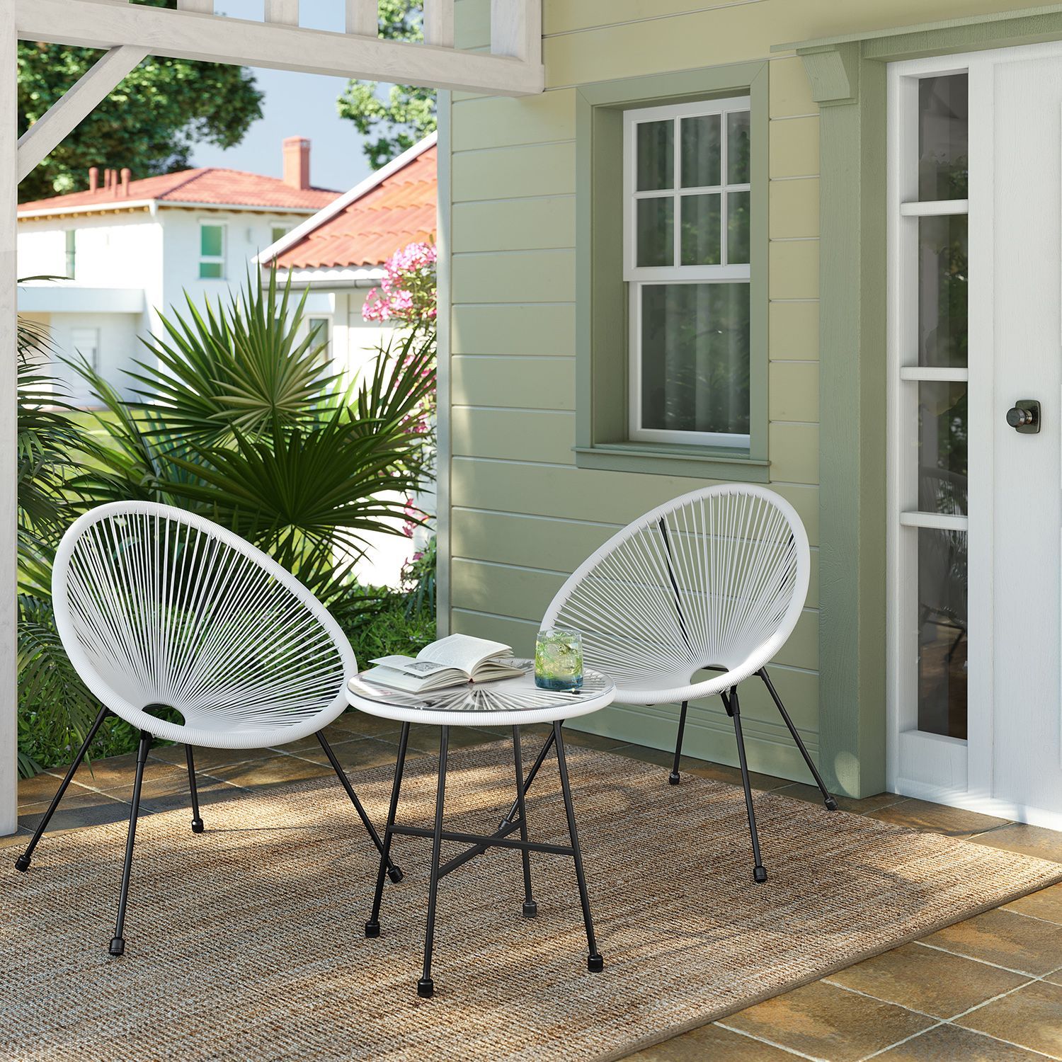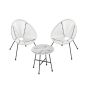 Transform your outdoor space with this stylish 3-piece Acapulco patio furniture set. Perfect for both indoor and outdoor use, it includes a chic glass-top table and two comfortable chairs. Enjoy conversations and relaxation in style with this durable and elegant white set, ideal for patios, balconies, or sunrooms.