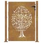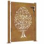 This garden gate, featuring a perfect combination of strength and elegance, makes an ideal entry point for the fence around your garden or patio. Durable material: The metal gate is made of corten steel. Corten steel, also known as weathering steel. This is anti-corrosive by its very nature. It develops a rusty protective layer against corrosion when first exposed to atmospheric conditions. Thus, you don't need to paint it. This can help you save on maintenance and repair costs. The distinctive brown colour on the corten steel will surely be an eye-catcher. Finally, weathering steel is exceptionally durable and will stand up to the test of time. Laser-cut design: The side gate has a beautiful laser-cut design that adds a special charm to your home.Lockable system: The steel gate is equipped with a lockable system for extra security.Stable base: The 4 mounting holes in the base of the gate post allow you to fix it to the ground for added stability. Good to know:This product should be assembled.The gate frame is not included in the delivery.This product is not rusted yet and has a normal metal colour when you receive it, but rust will develop over time. You could speed up the rusting process by spraying it with soap water and salt water. To keep your clothes stain-free, avoid contact with the developing rust layer.