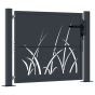 This garden gate, featuring a perfect combination of strength and elegance, makes an ideal entry point for the fence around your garden or patio. Durable material: Steel is an exceptionally hard and strong material. It offers sturdiness and stability. Galvanisation provides better protection against corrosion and is useful for products that'll be used outdoors as well as in harsh environments. And the powder coating on steel creates a protective layer against wear and tear.Laser-cut design: The security gate has a beautiful laser-cut design that adds a unique charm to your home.Lockable system: The outdoor gate is equipped with a lockable system for extra security.Easy to assemble: The entrance gate comes complete with two posts with flange plates and mounting accessories for easy installation.
