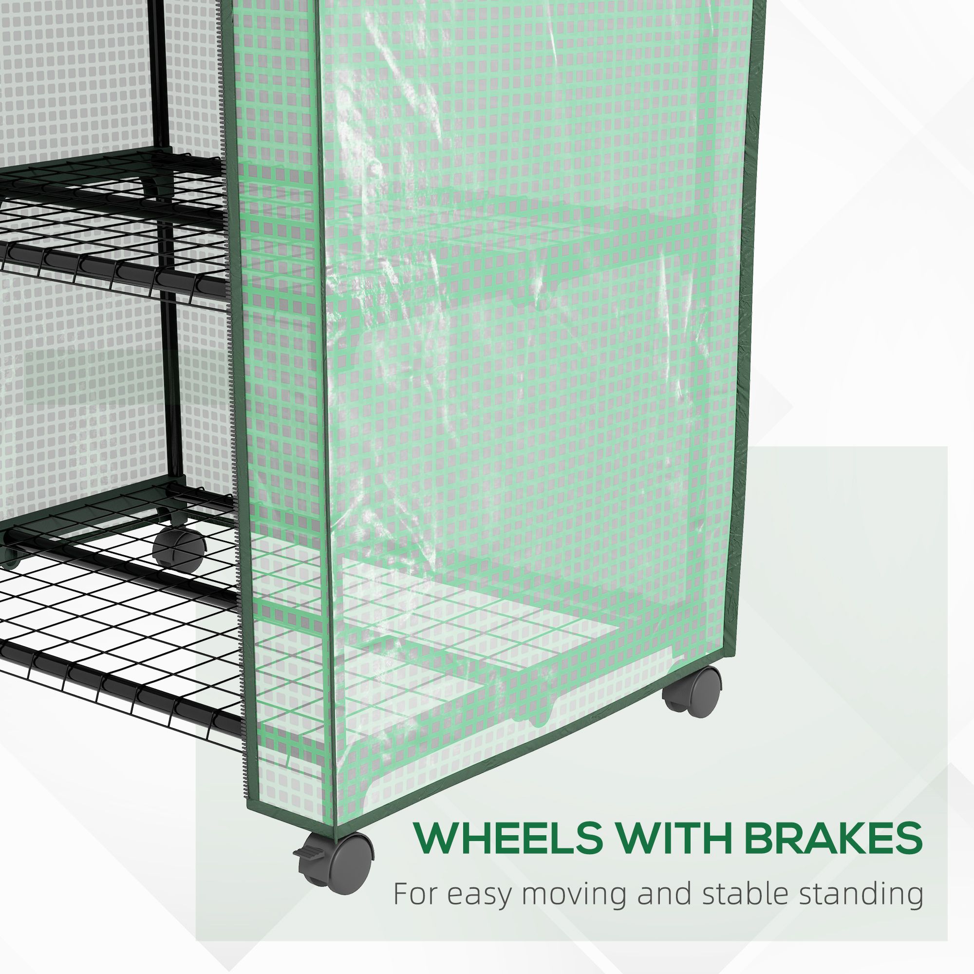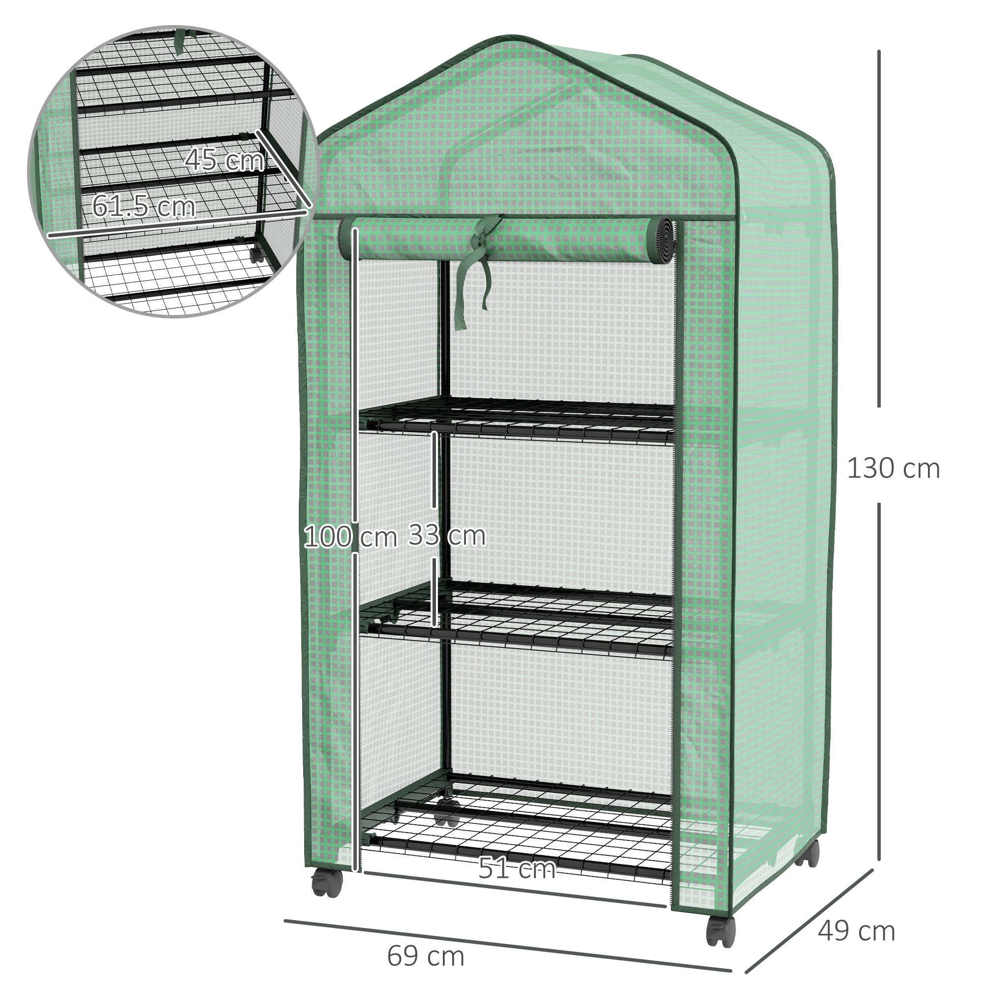 Grow plenty of plants, flowers and vegetables wherever you want, with this Puerto mini greenhouse. With a steel frame for a strong core, it's formed into a three-tier design so you organise; the mesh shelves means there's no liquid build up so the frame doesn't become damaged. Fitted with a tough three-layer plastic cover to protect growing plants inside, complete with a roll up door to access inside and wheels to move around. Use in the corner of your outdoor spaces - even windowsills!