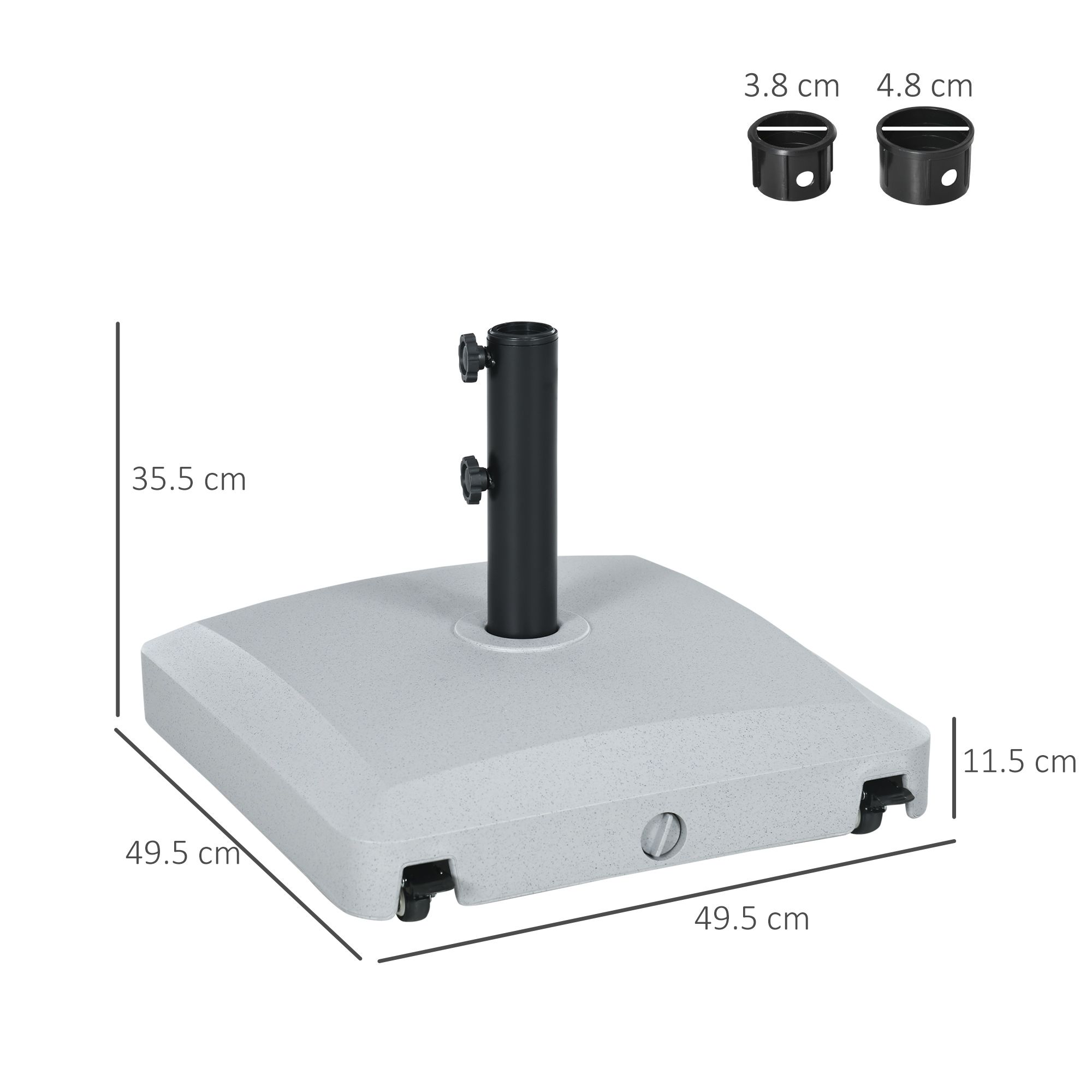 Garden Parasol Base Holder, 24kg Water or 30kg Sand Filled, Outdoor Market Umbrella Stand Weight with Wheels and Brakes, Grey