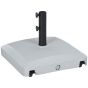 - Parasol base on wheels: Move this outdoor umbrella stand around easily - whether parasol is attached or not. Brakes to stand in place.