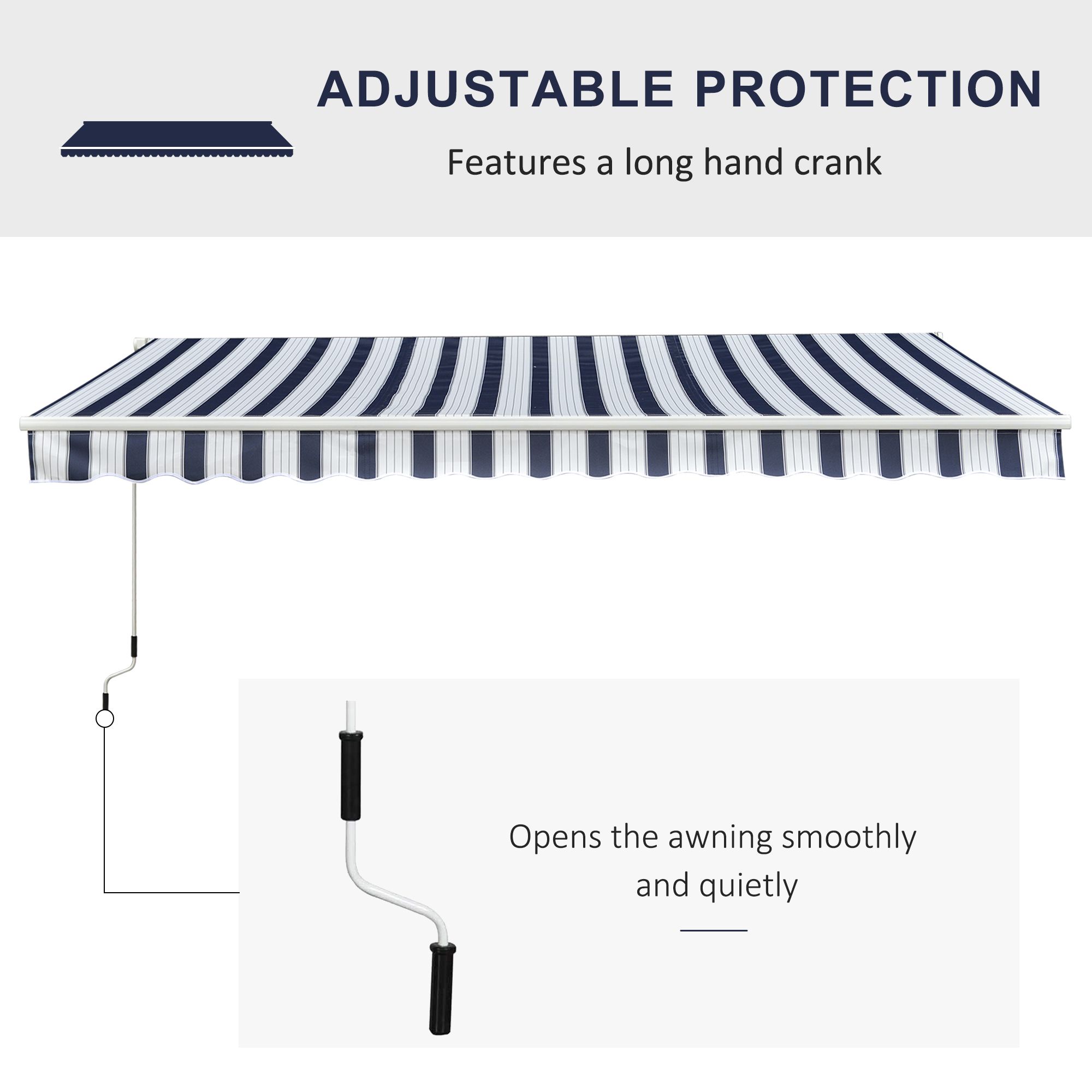 Garden Patio Manual Awning Canopy Sun Shade Shelter Retractabl Retractable Awning, 3.5x2.5 m-Blue/White