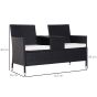Garden Rattan 2 Seater Companion Seat Wicker Love Seat Weave Partner Bench w/ Cushions Patio Outdoor Furniture (Black)