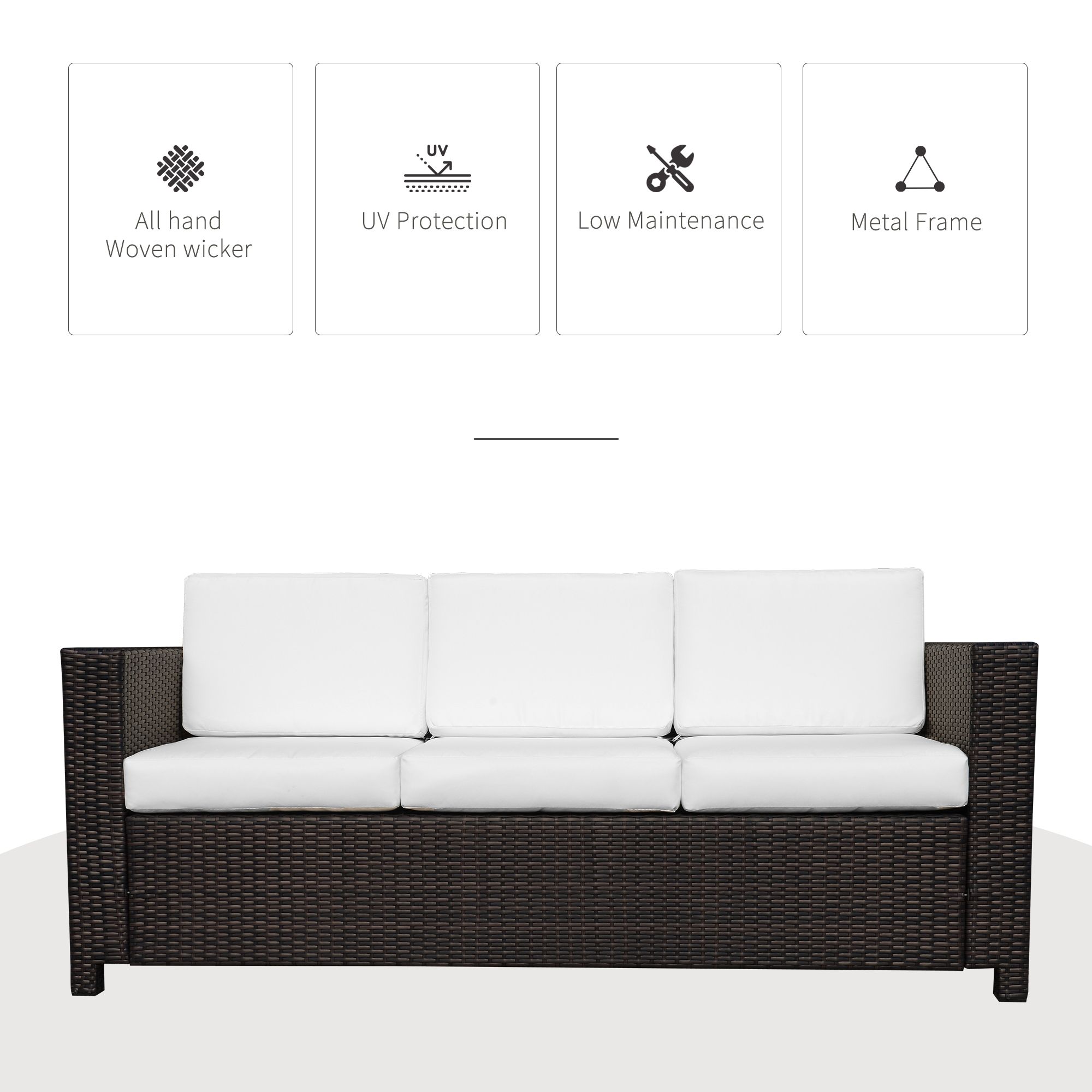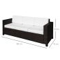 Garden Rattan 3 Seater All-Weather Wicker Weave Metal Frame Chair with Fire Resistant Cushion - Brown