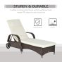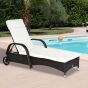 Garden Rattan Furniture Single Sun Lounger Recliner Bed Reclining Chair Patio Outdoor Wicker Weave Adjustable Headrest - Brown