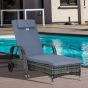 Garden Rattan Furniture Single Sun Lounger Recliner Bed Reclining Chair Patio Outdoor Wicker Weave Adjustable Headrest - Grey