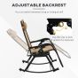 Garden Rocking Chair Folding Recliner Outdoor Adjustable Sun Lounger Rocker Zero-Gravity Seat with Headrest Side Holder Patio Deck - Beige