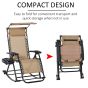 Garden Rocking Chair Folding Recliner Outdoor Adjustable Sun Lounger Rocker Zero-Gravity Seat with Headrest Side Holder Patio Deck - Beige
